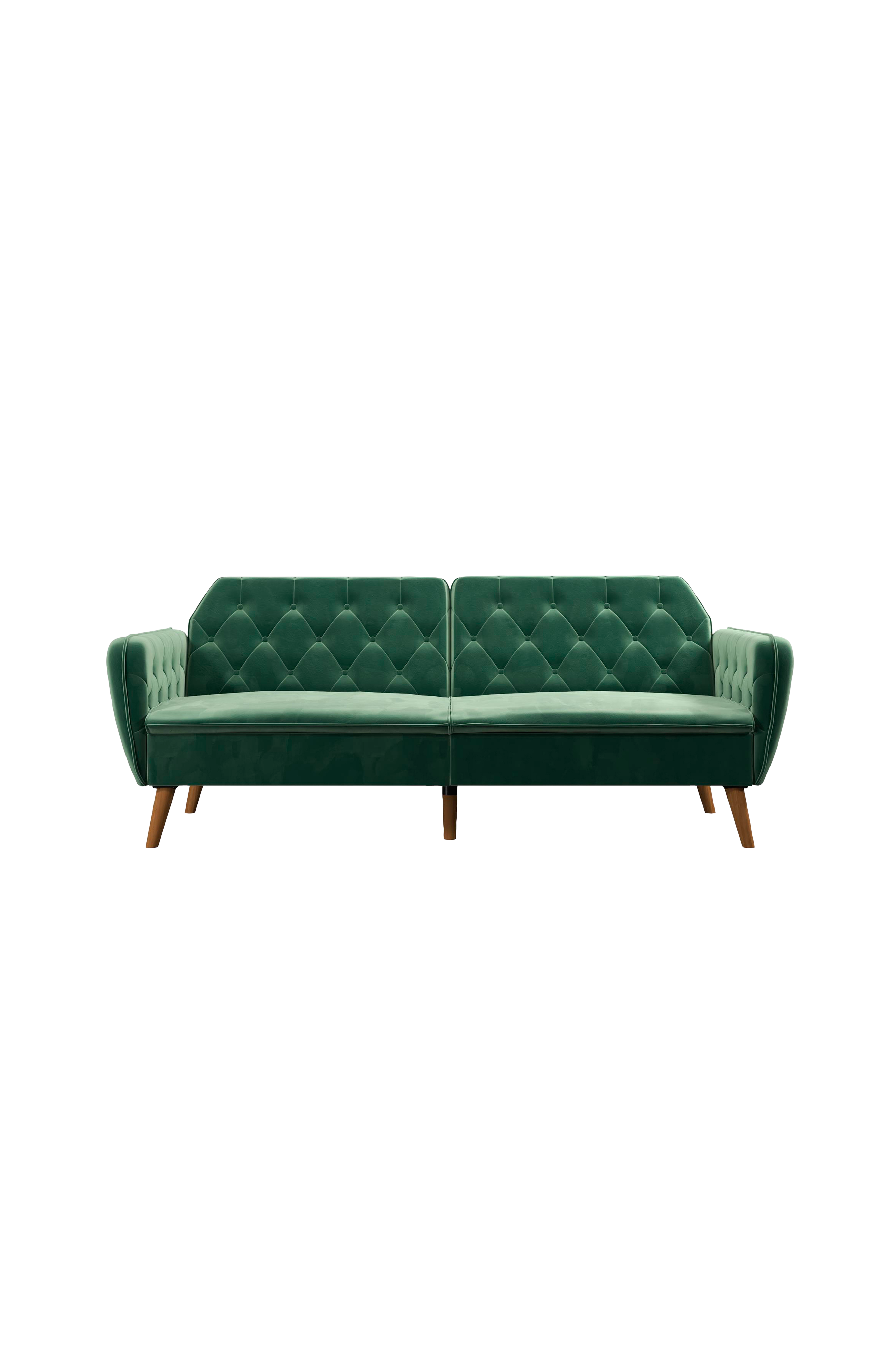 Novogratzin Tallulah-vuodesohva, jossa memory foam -vaahto. Sohva, jota tarvitset ja paljon enemmän! Vintagehenkisesti muotoiltu sohva, joka luo kotiisi elegantin ja hienostuneen ilmeen pyöreine muotoineen ja syvään upotettuine nappeineen. Kompaktissa ja monikäyttöisessä sohvassa on pehmeä samettiverhoilu. Tallulah-vuodesohvassa on memory foam -vaahto ja vakaa puurunko. Vuodesohva on suunniteltu tarjoamaan ylivertaista mukavuutta! Istuinpehmusteissa on täytteenä korkeatiheyksistä vaahtoa ja responsiivista memory foam -vaahtoa, jotka tukevat kehoasi lievittäen painepisteitä katsoessasi televisiota tai ollessasi päiväunilla. Selkänojassa on jaettu muotoilu, ja se voidaan kallistaa useisiin eri asentoihin: istuma-, lepo- ja makuuasentoon. Se tarkoittaa, että sinulla on nyt lisävuode yövieraille! Saatavana useita värejä. Levenevät puujalat luovat elegantin ilmeen!