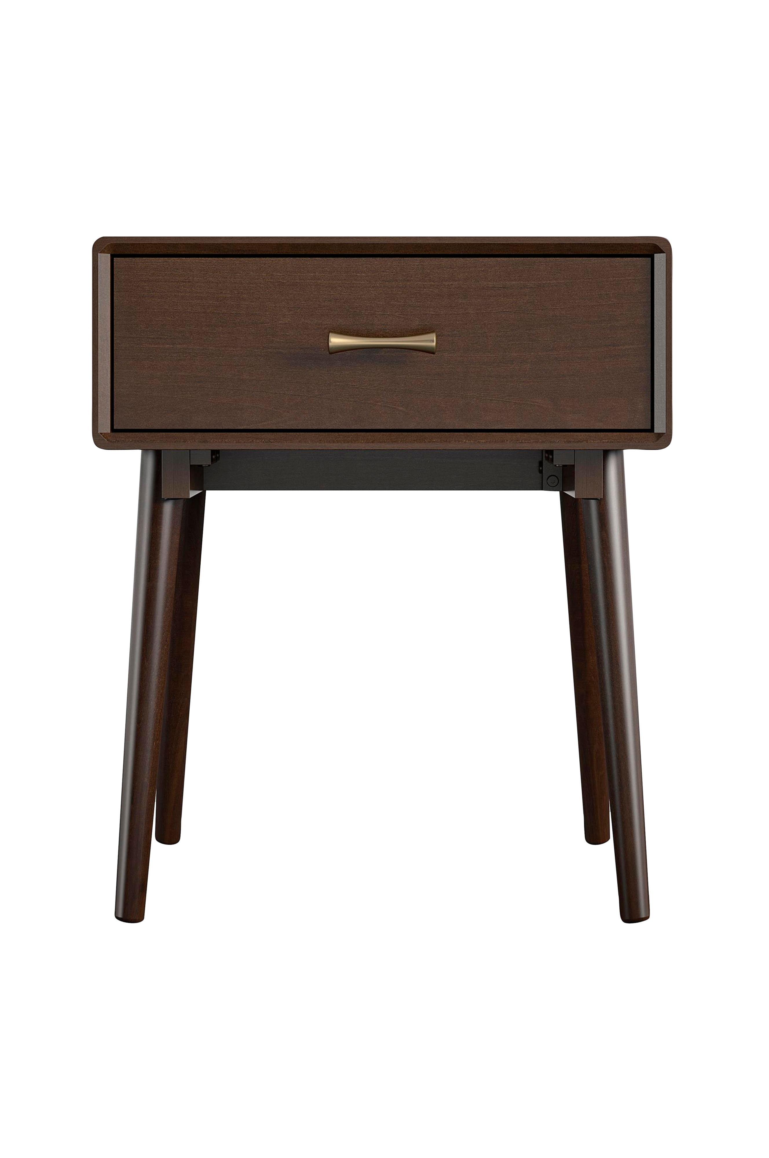 Novogratz Brittany 1 Drawer Nightstand -yöpöytä on valmistettu kauniista pähkinäpuun värisestä puuviilusta, joka näyttää ja tuntuu aidolta puulta ja sopii täydellisesti yhteen viistojen puujalkojen kanssa. Pöydälle mahtuu kirjoja, lehtiä, elektroniikkaa ja yövalaisin. Siinä on langaton latausasema, jossa voit ladata helposti Qi-yhteensopivat laitteet. Laatikkoon voi laittaa esimerkiksi lukulasit, kyniä ja kirjoja. Yöpöytä toimitetaan osina litteässä paketissa. Suosittelemme, että kaksi aikuista kokoaa tuotteen. Kootun yöpöydän mitat K 61 x L 51 x S 45 cm.