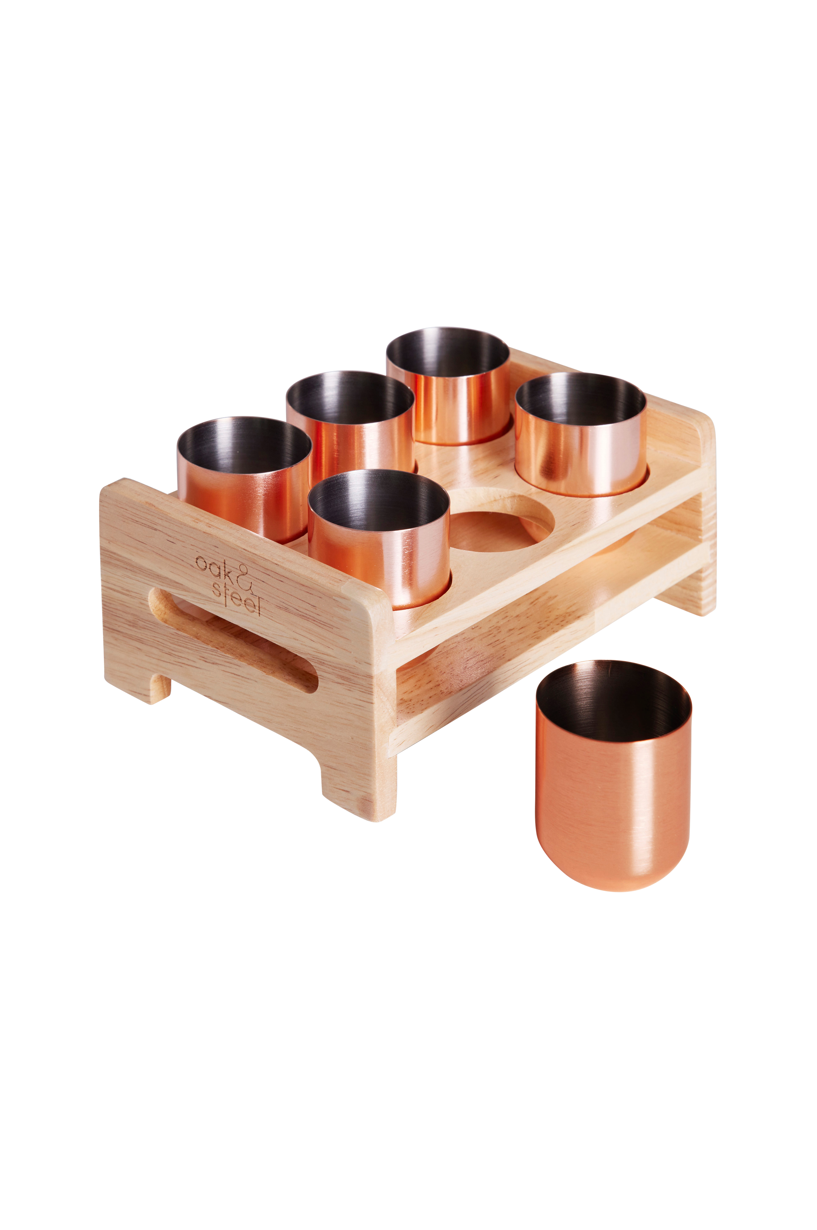 Oak & Steel Shotglassit puisella tarjottimella 6-pack