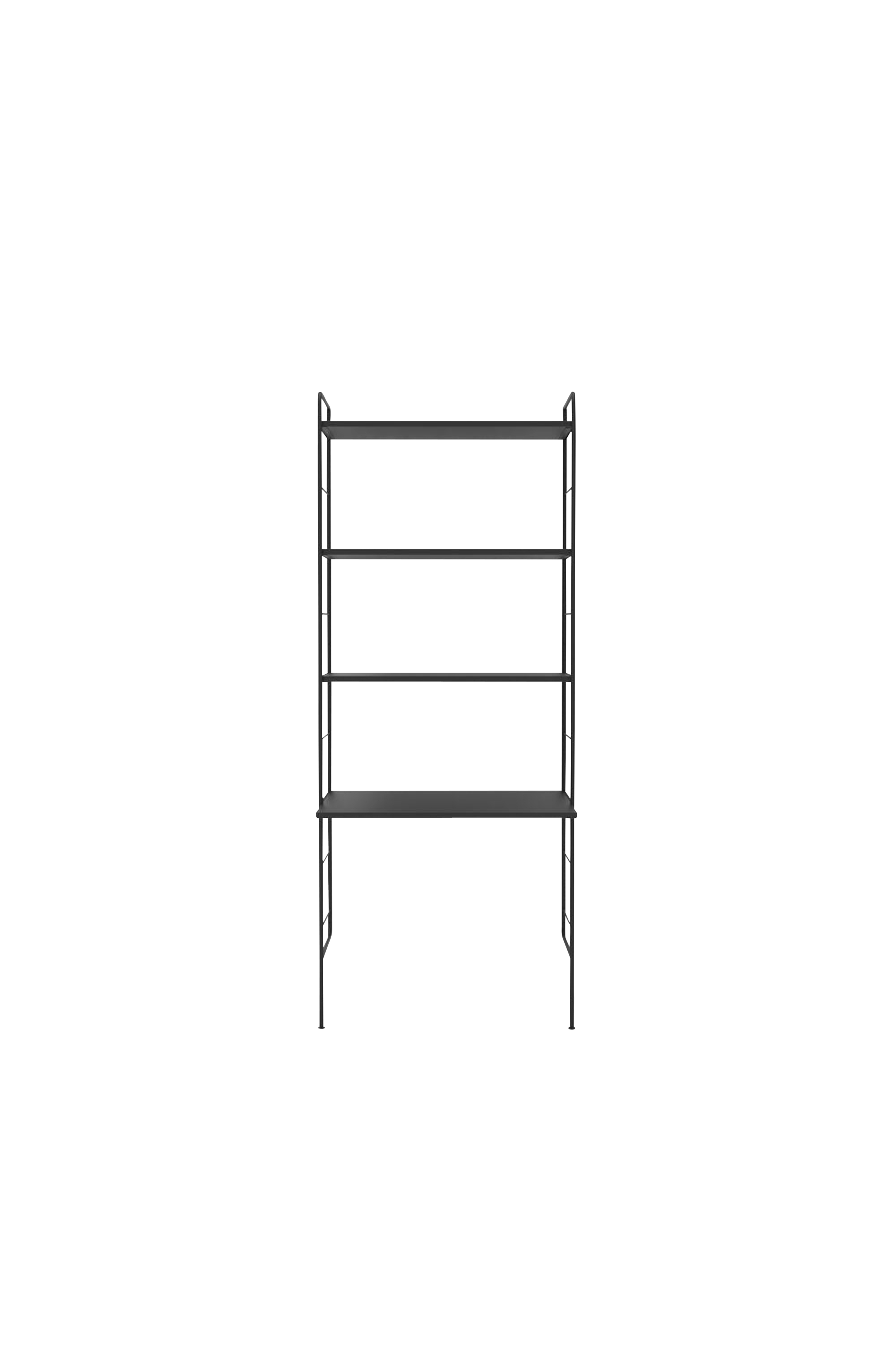 Kirjahylly, jossa työtaso, laatikosto ja hyllytasoja. Muunneltava, rakennettava ja säädettävä hylly- ja säilytysjärjestelmä. Saatavilla on useita yhdistelmiä eri toiminnoilla ja värivaihtoehdoilla. Design Hans Thyge & Co. Runko on valmistettu vesipohjaisesta jauhemaalatusta metallista. Säädettävät jalat. Kaappi ja hyllytasot maalattua FSC-sertifioitua MDF-levyä, työtaso melamiinia.