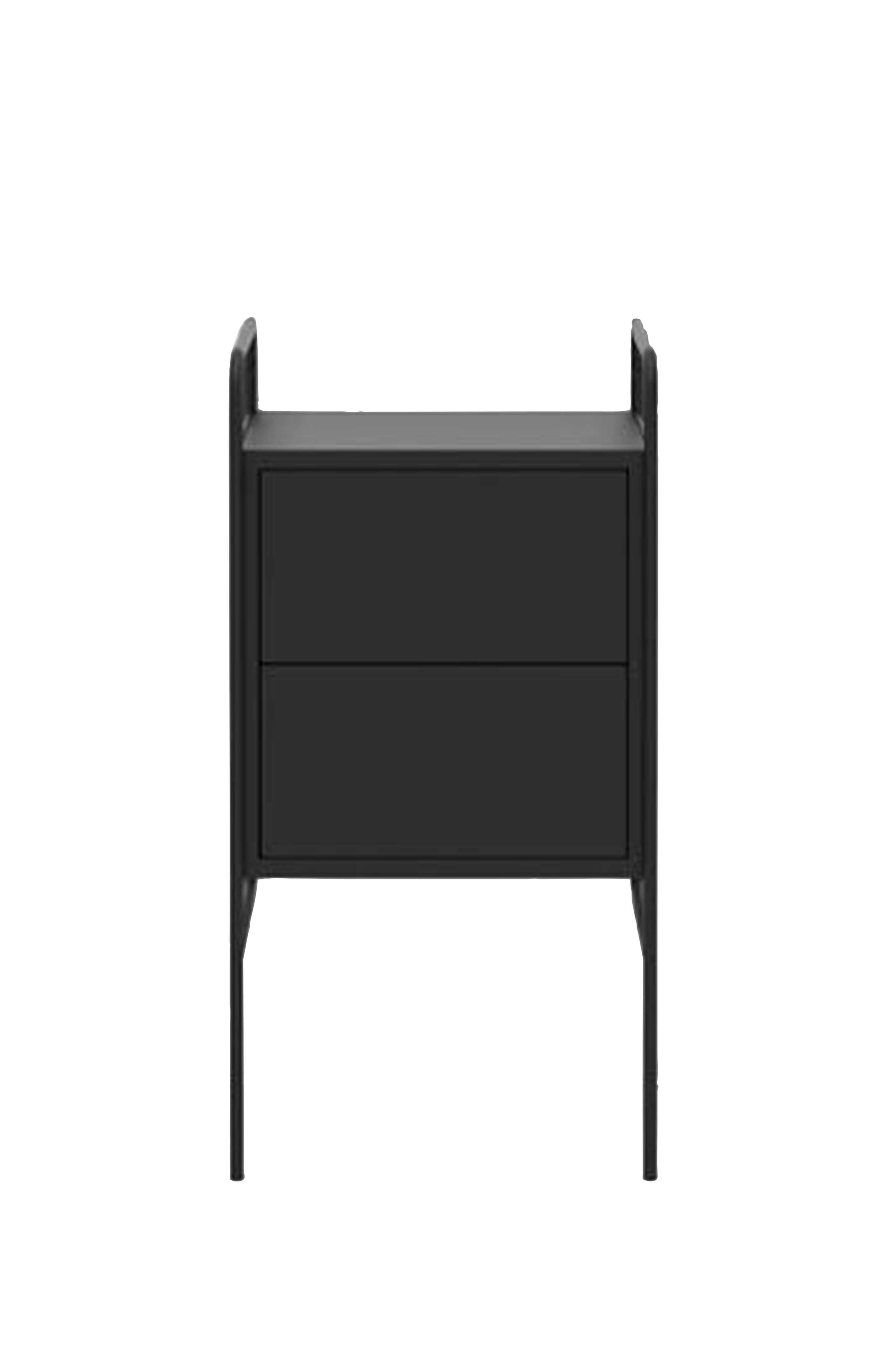 Laatikollinen yöpöytä. Muunneltava, rakennettava ja säädettävä hylly- ja säilytysjärjestelmä. Saatavilla on useita yhdistelmiä eri toiminnoilla ja värivaihtoehdoilla. Design Hans Thyge & Co. Runko on valmistettu vesipohjaisesta jauhemaalatusta metallista. Säädettävät jalat. Hyllytasot ja runko maalattua FSC-sertifioitua MDF-levyä, ovet ja laatikoiden etuosat maalattua MDF-levyä.
