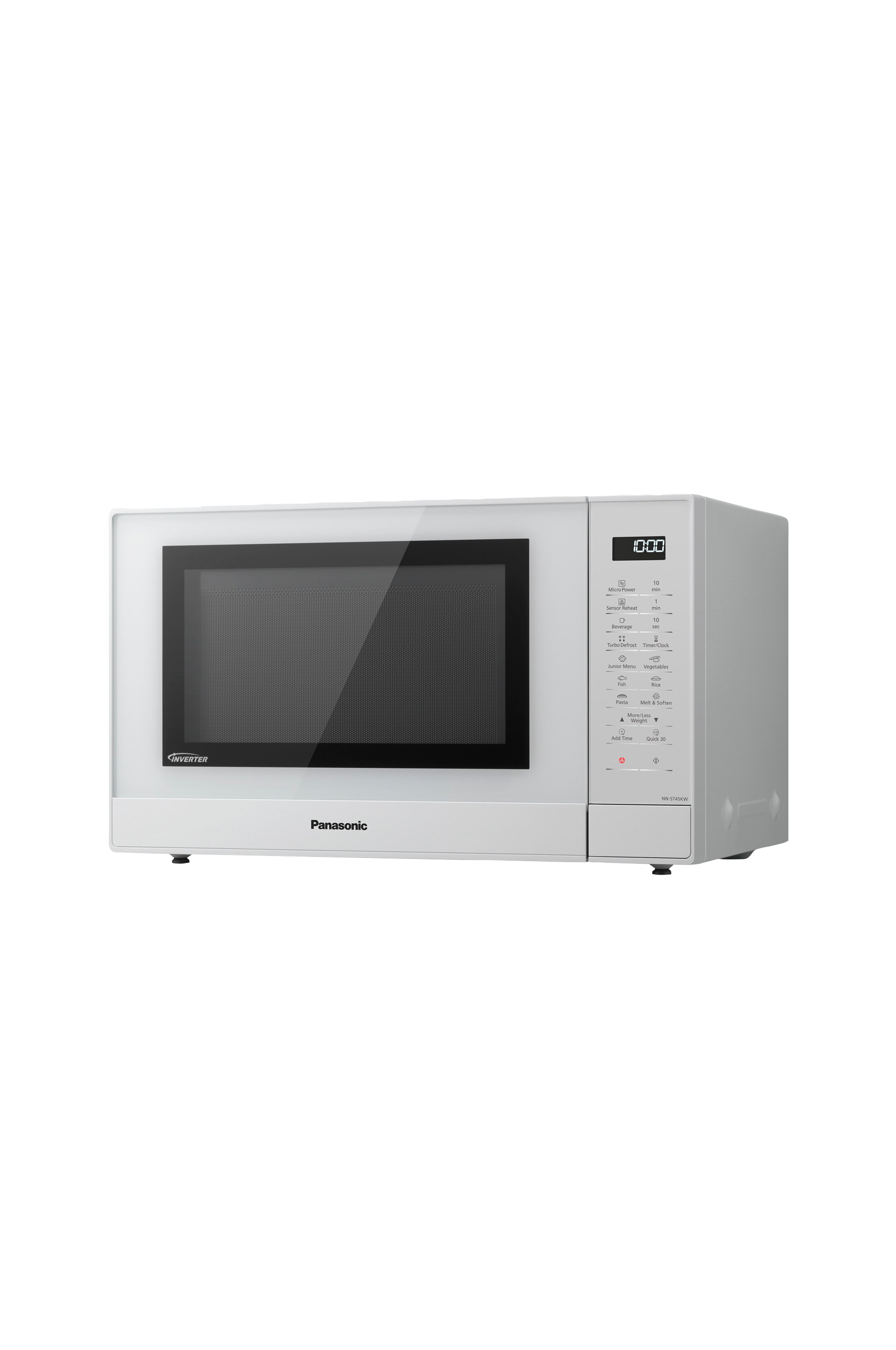 NN-ST45K-mikroaaltouunin tilavuus on 32 litraa, ja siinä on 34 cm:n kokoinen pyörivä lasilautanen. Kookkaan lautasen ansiosta uunissa onnistuu helposti ruoanlaitto suurellekin joukolle.