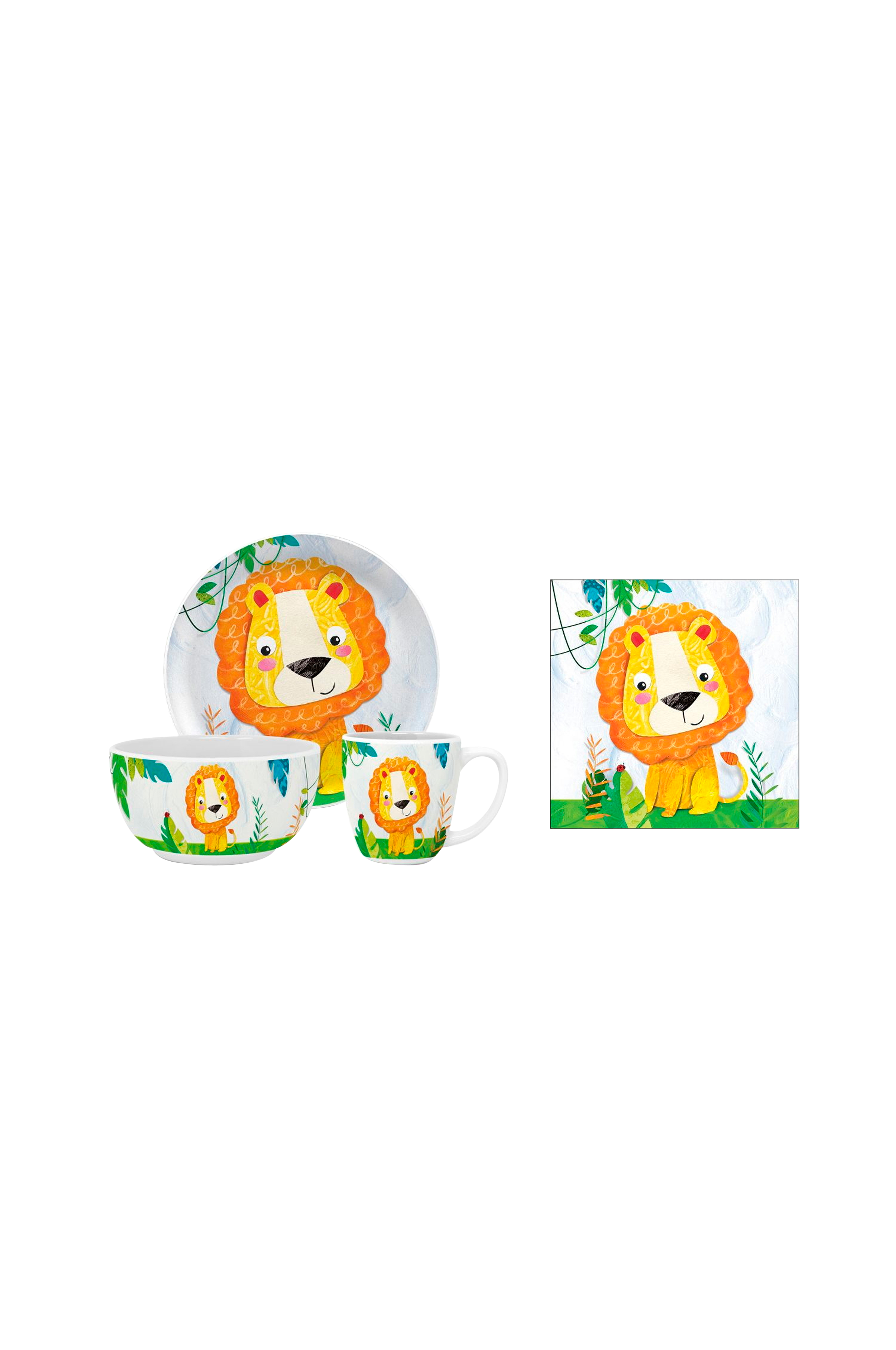 Paperproducts Design Lahjapakkaus, 3-osainen lasten astiasto + lautasliinat Happy Lion
