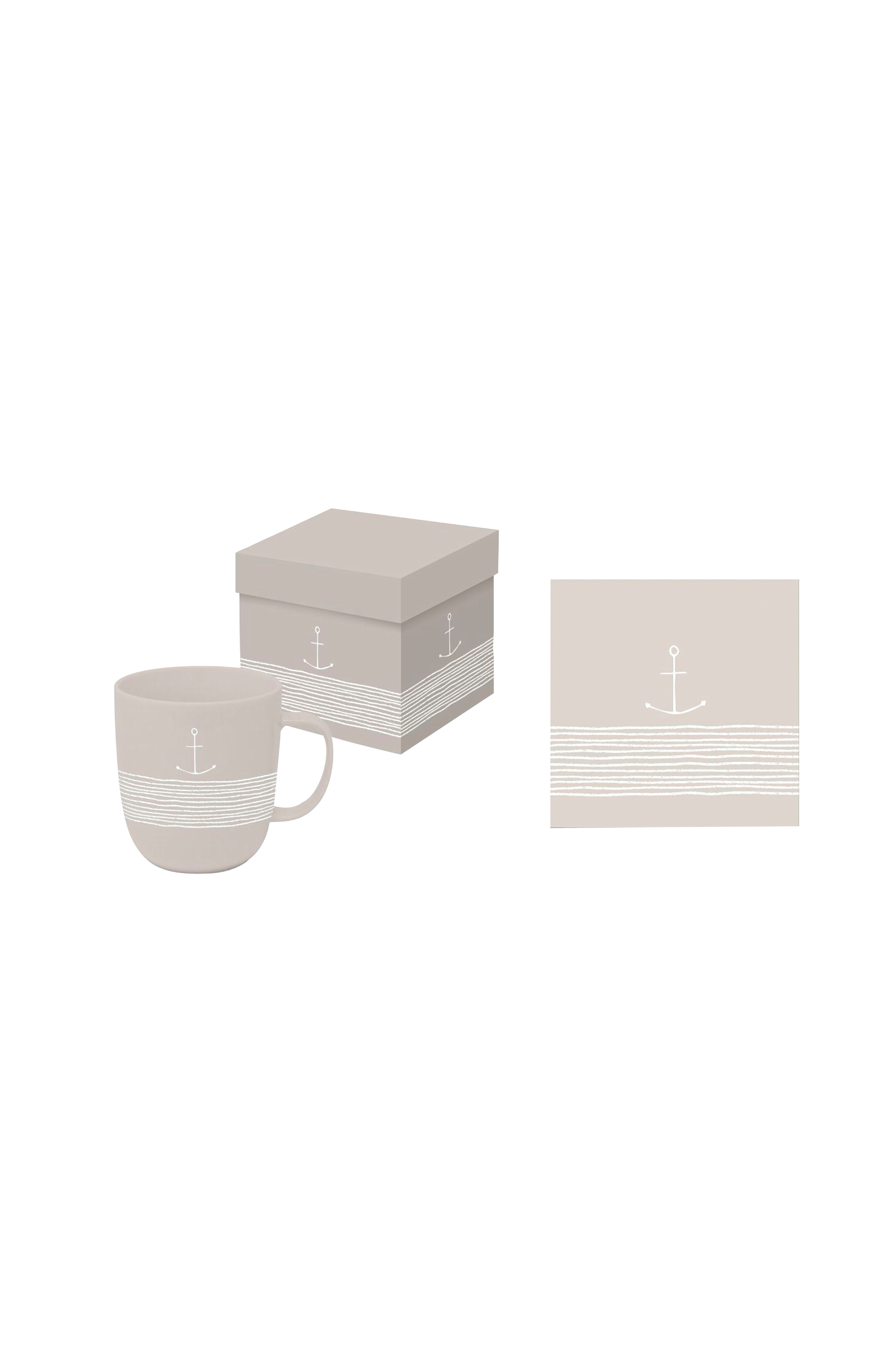 Paperproducts Design Lahjapakkaus, muki 35 cl + lautasliina Pure Anchor