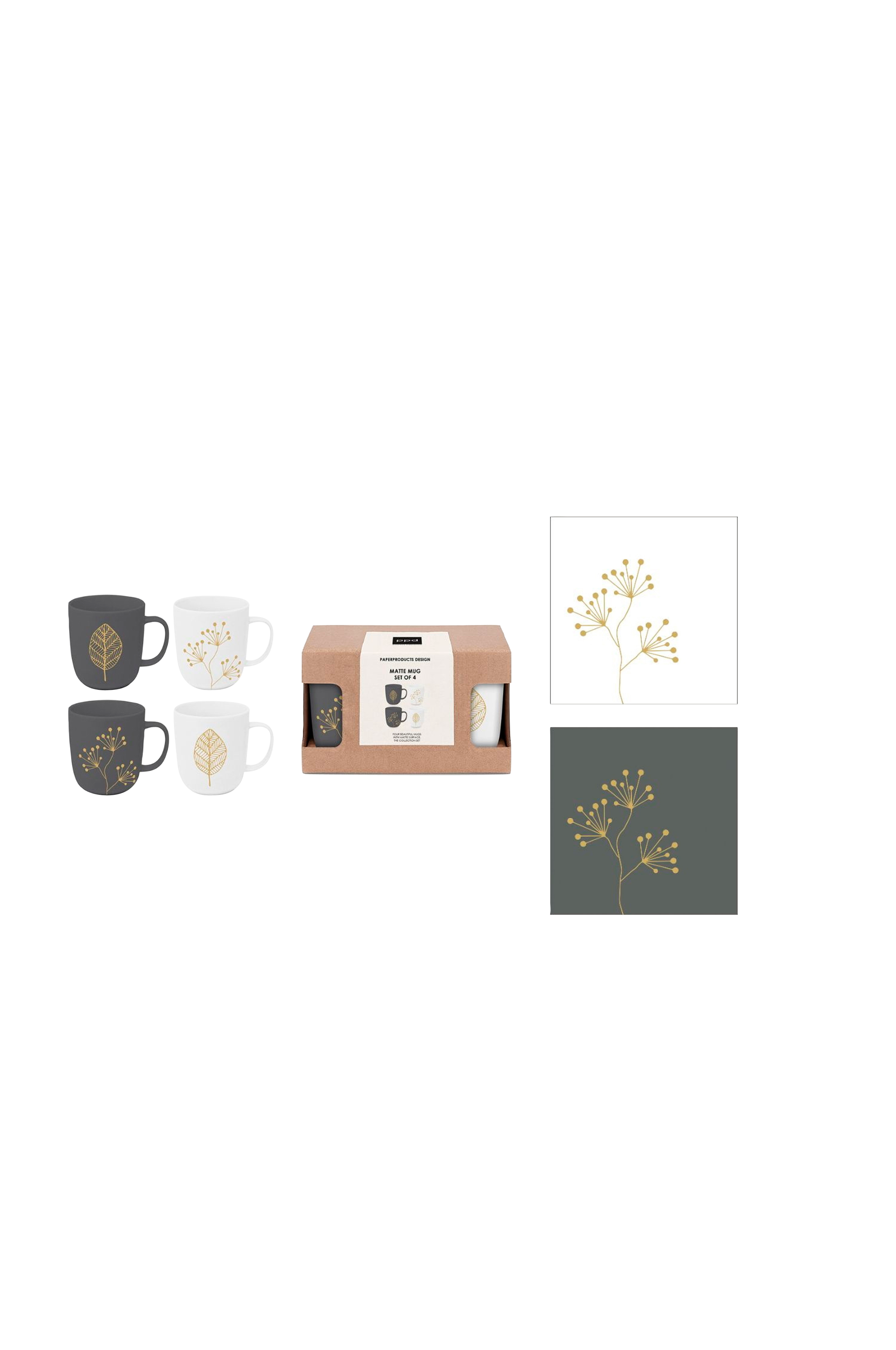Paperproducts Design Lahjapakkaus, mukit 4 kpl 35 cl + lautasliina Pure Leaves & Berries