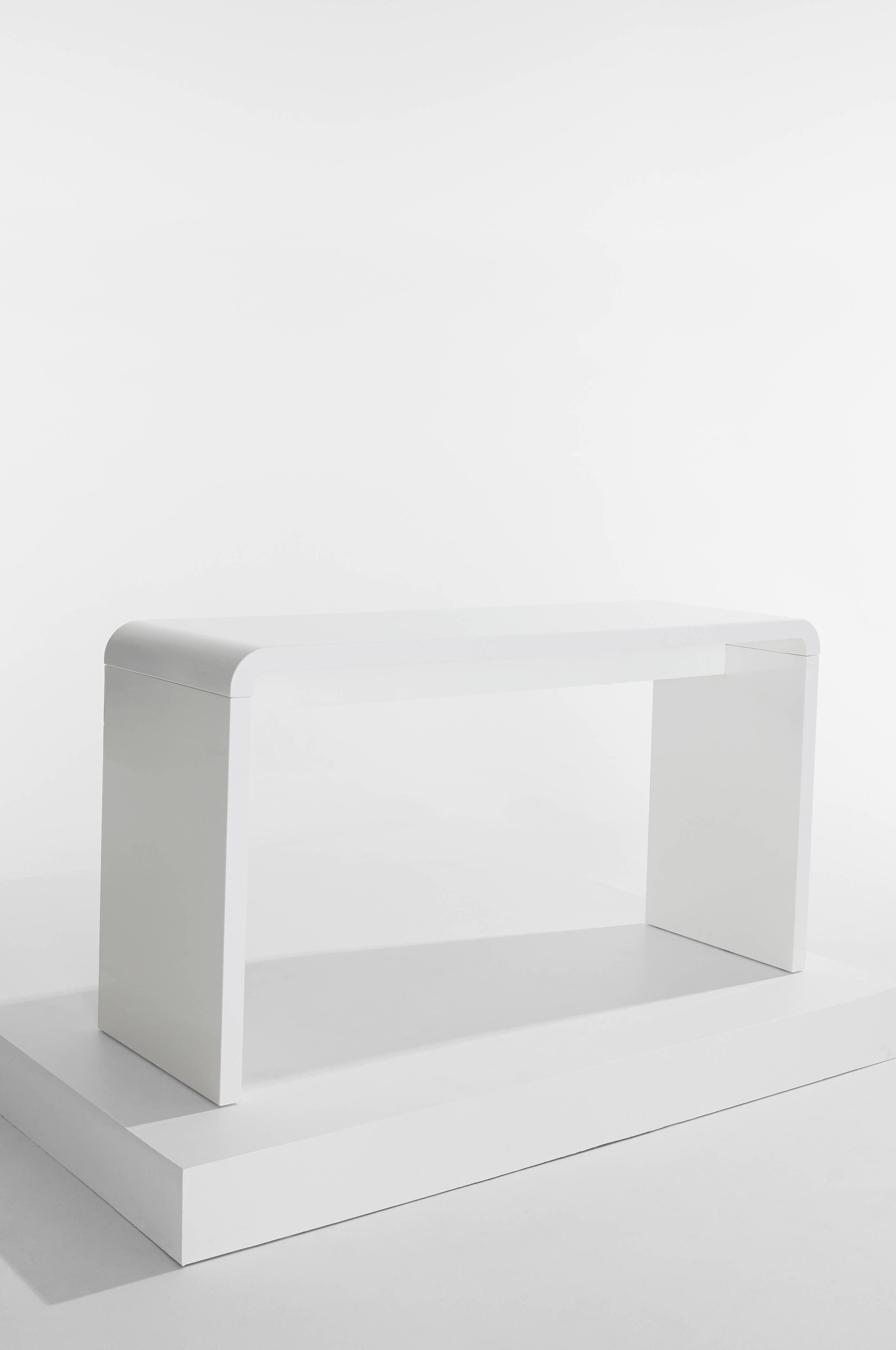 Miellyttävän muotoinen kirjoitus-/sivupöytä, jossa on kiiltävä pinta. Blanche-pöytä ottaa paikkansa huoneessa, ja sen kevyt ja pelkistetty muotoilu antaa huoneelle ilmavan ja raikkaan ilmeen. Pöytä toimii täydellisenä kotitoimistona, ja sen voi helposti muuttaa tarjoilupöydäksi tai sijoittaa eteiseen tekemään kodistasi kutsuvan.