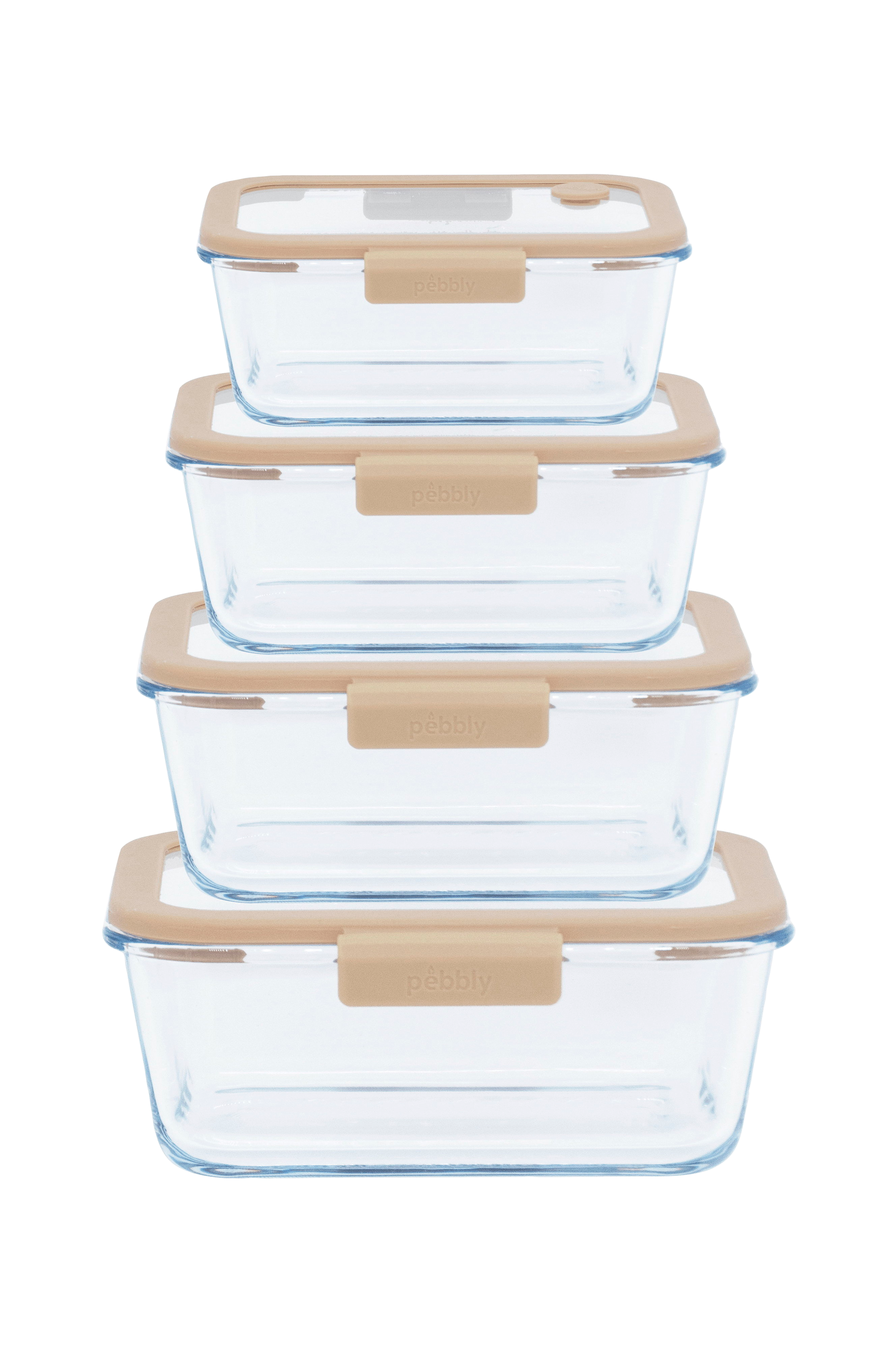 Pebblyn 4 lasisen tyhjiöpakkauslaatikon sarja on monipuolinen ratkaisu elintarvikkeiden säilyttämiseen. Se sisältää tyhjiöpumpun, joka voidaan ladata usb-tyyppi-c-porttijohdon kautta. Näiden tölkkien kansissa on läpät, jotka takaavat täydellisen ilmatiiviyden, mutta ovat samalla läpinäkyviä, jotta sisältö on helppo nähdä. Nämä lasiastiat on suunniteltu kuumuutta kestäviksi, joten niitä voidaan käyttää mikroaaltouunissa ja uunissa (ilman kantta) sekä pakastimessa ja astianpesukoneessa. Lisäksi niiden pohjat ovat erikokoisia, ja niitä voi pinota, jotta niiden säilytys keittiössäsi olisi optimaalista. Tyhjiöpakkaaminen vie vain sekunteja tyhjiöpumpun ansiosta, mikä takaa ruoan pitkäaikaisen säilymisen.