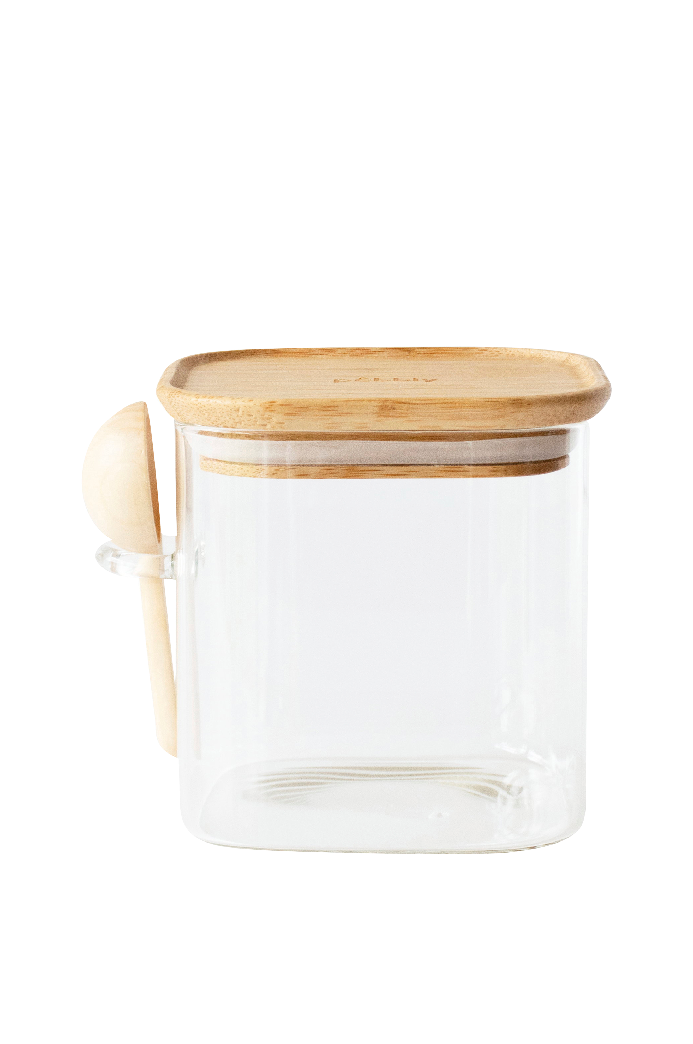Pebbly Korkea lasikanisteri, jossa on bambukansi ja mittalusikka - 800 ml
