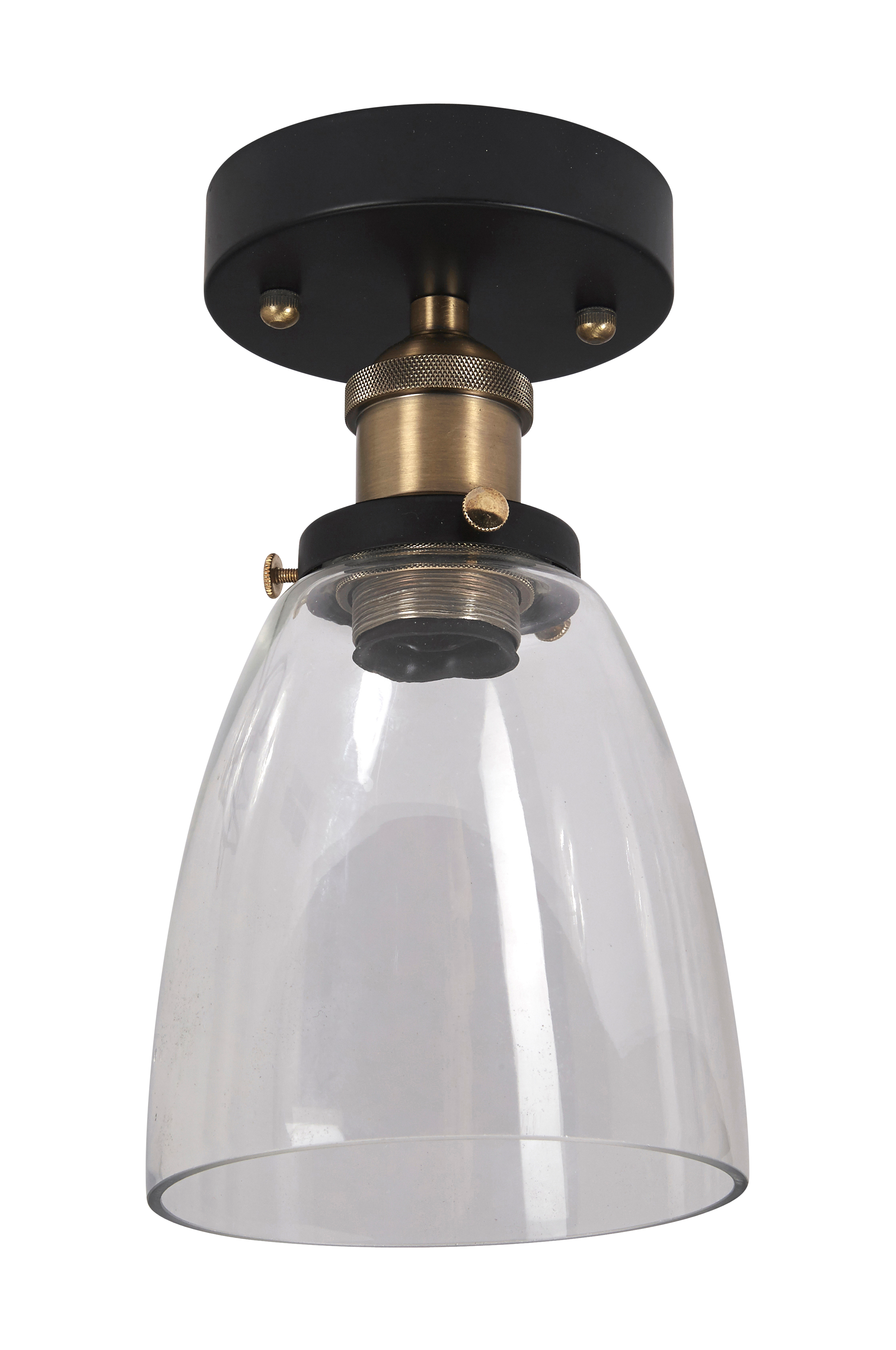 Klassinen kattovalaisin, jossa lasia ja mattamusta metallirunko. Lasinvärisen mallin metallirunko on mattamusta/messingin värinen. Valaisin on kosteussuojattu IP23-luokituksen mukaisesti ja sopii kylpyhuoneeseen. Korkeus 25 cm ja halkaisija 14 cm. Ei himmennettävä. Valonlähde ei sisälly toimitukseen.