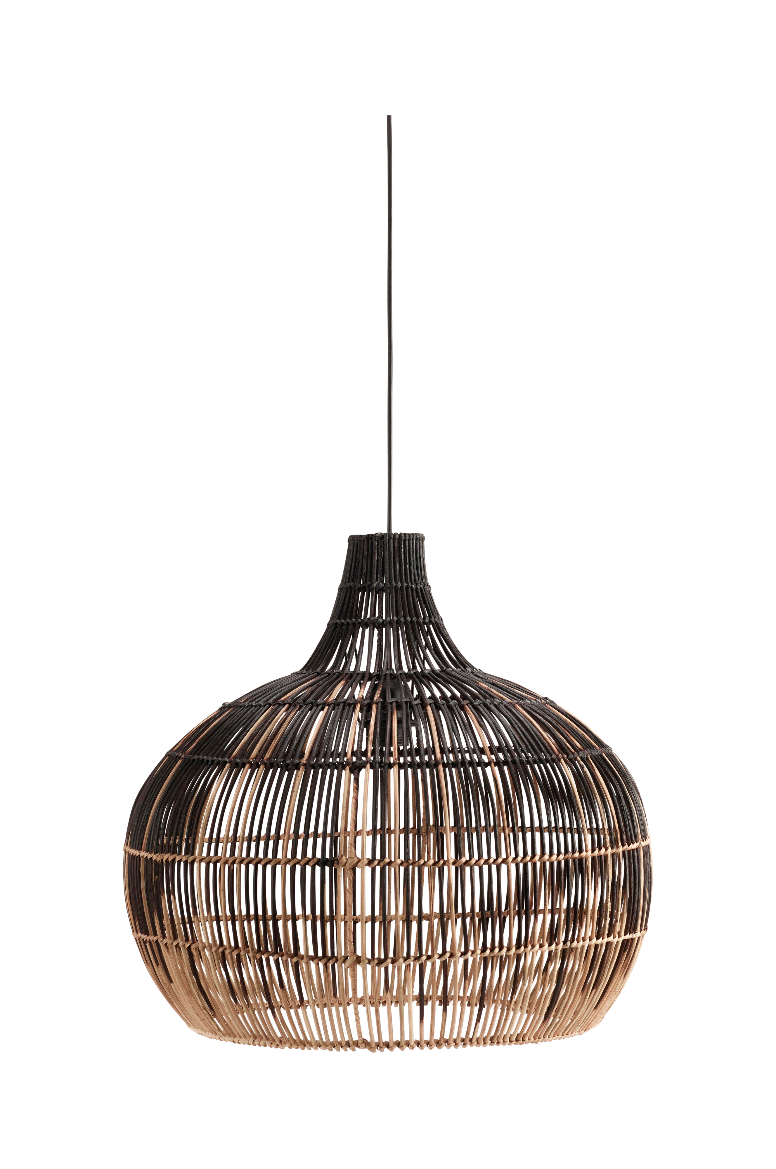 Martha-kattovalaisin luonnonrottinkia, jossa sävytetty ombre-efekti. Mukana musta E27-ripustussarja, 1,2 metrin johto ja kattokuppi sisäkäyttöön. Tilaa kattopistoke erikseen. Korkeus 47 cm, leveys 50 cm ja syvyys 50 cm. Varjostin sopii enintään 40 watin valonlähteelle. Maadoittamaton.