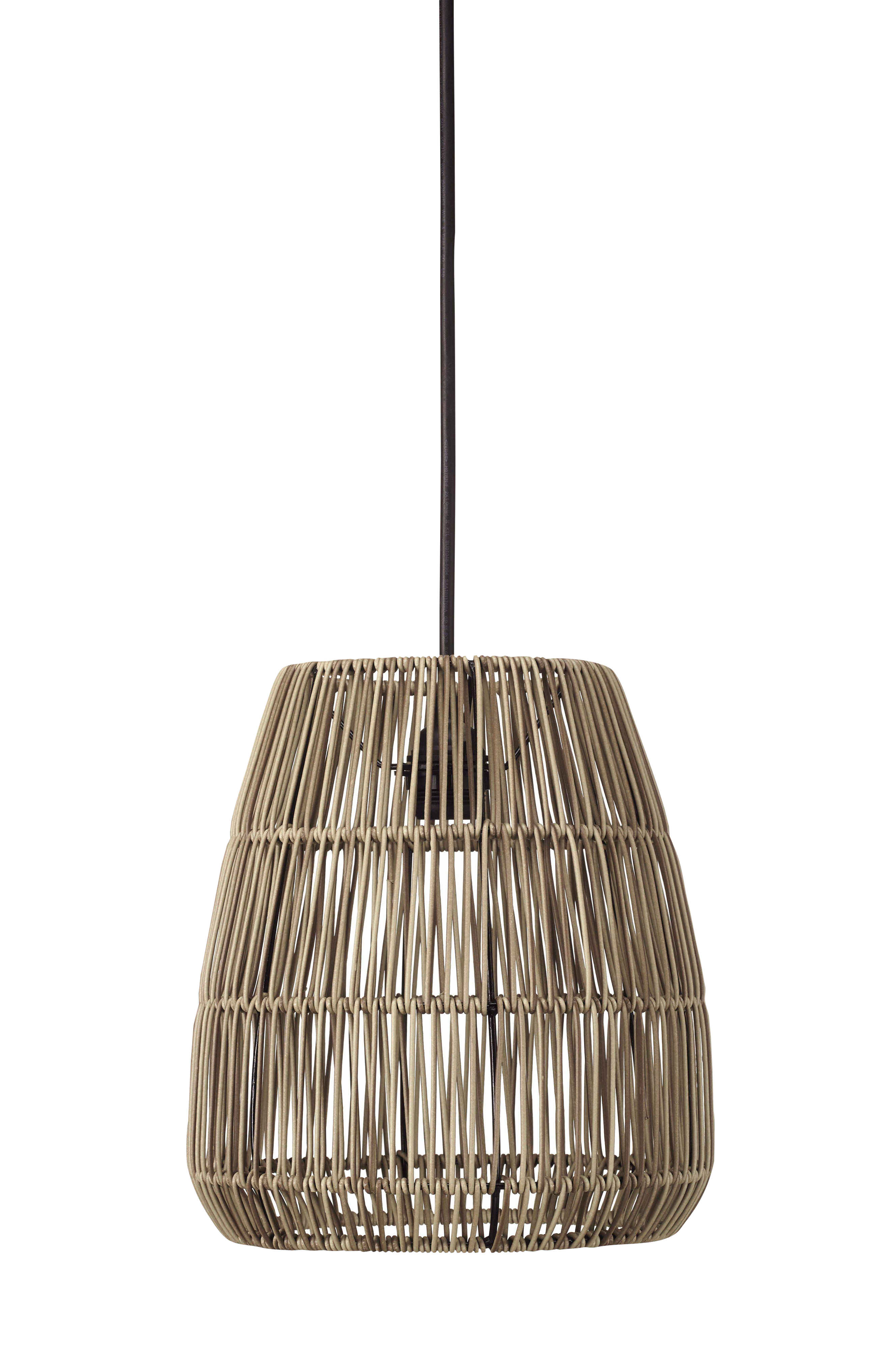 Saigon-kattovarjostin polyrottinkia. Polyrottinki on kestävä materiaali, joka kestää sadetta ja tuulta. Punottu struktuuri luo kauniin valon ja varjon leikin. Kattovarjostin myydään yhdessä mustan sisäkäyttöön tarkoitetun kattokoukun kanssa. 1,2 metrin johto, jossa E27-lampunpidike, ja kattokuppi ja ripustuskoukku. Enintään 40 W. IP20. Valonlähde ja kattopistoke eivät sisälly toimitukseen.