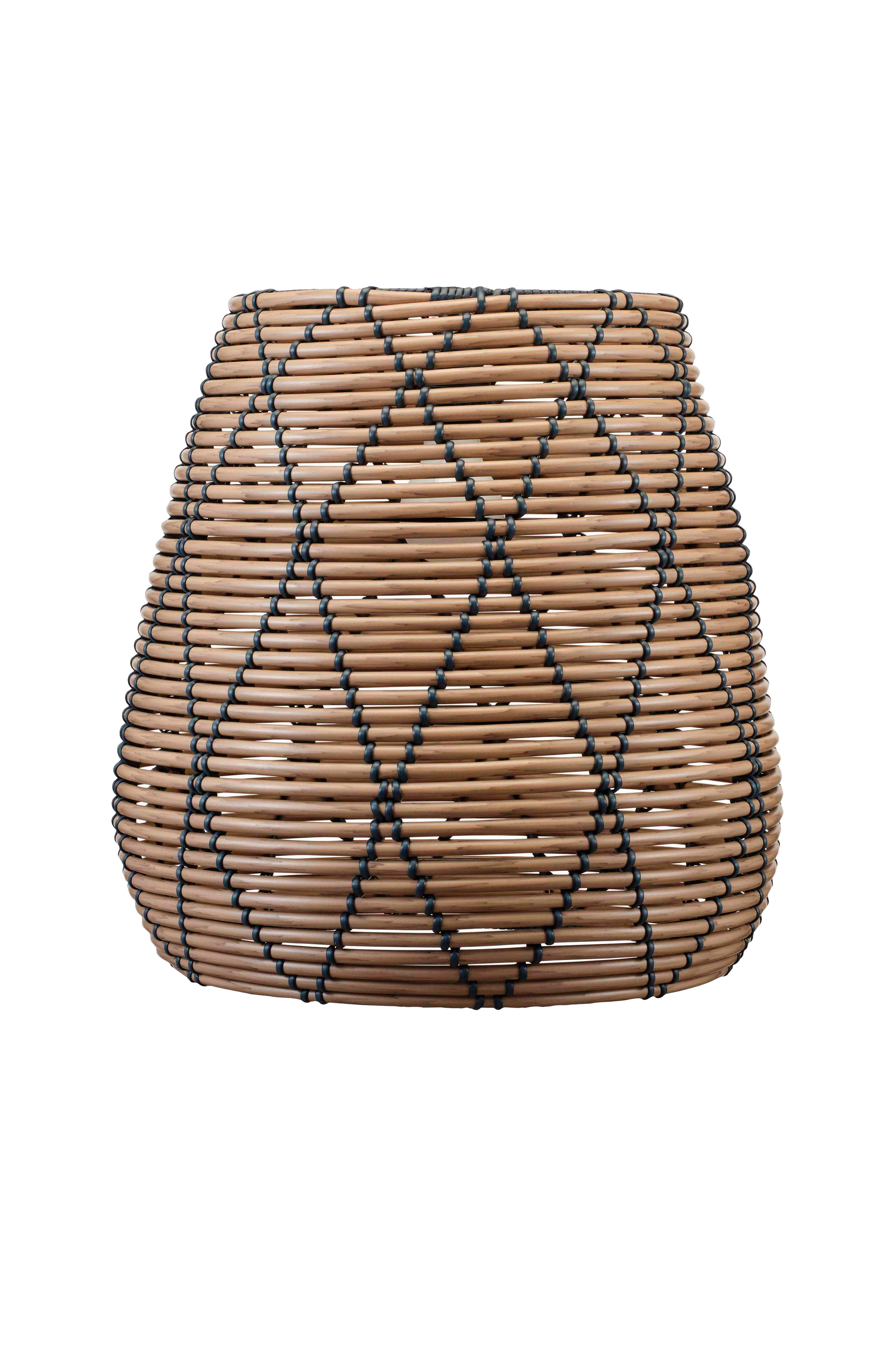 Polyrottinkinen Lollo-kattovarjostin ulkokäyttöön. Polyrottinki on kestävä materiaali, joka kestää sadetta ja tuulta. Punottu struktuuri luo kauniin valojen leikin. Korkeus 40 cm, leveys 38 cm ja syvyys 38 cm.