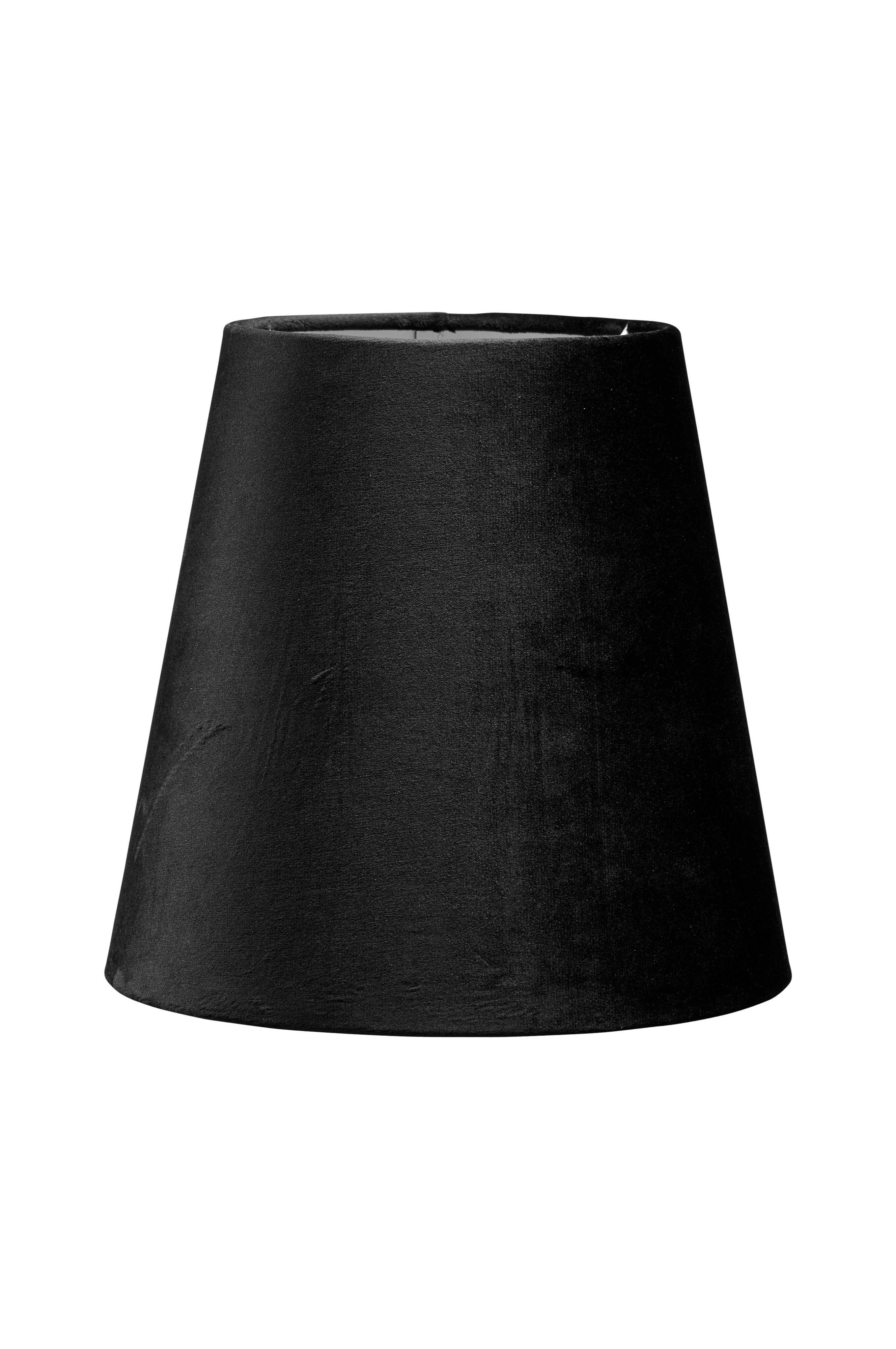 Kiinnike 3 cm yläreunan alapuolella. Varjostin sopii lukuvalaisimiin. Kippikiinnitys E27-lampunkantaan. Materiaali: Samettia.