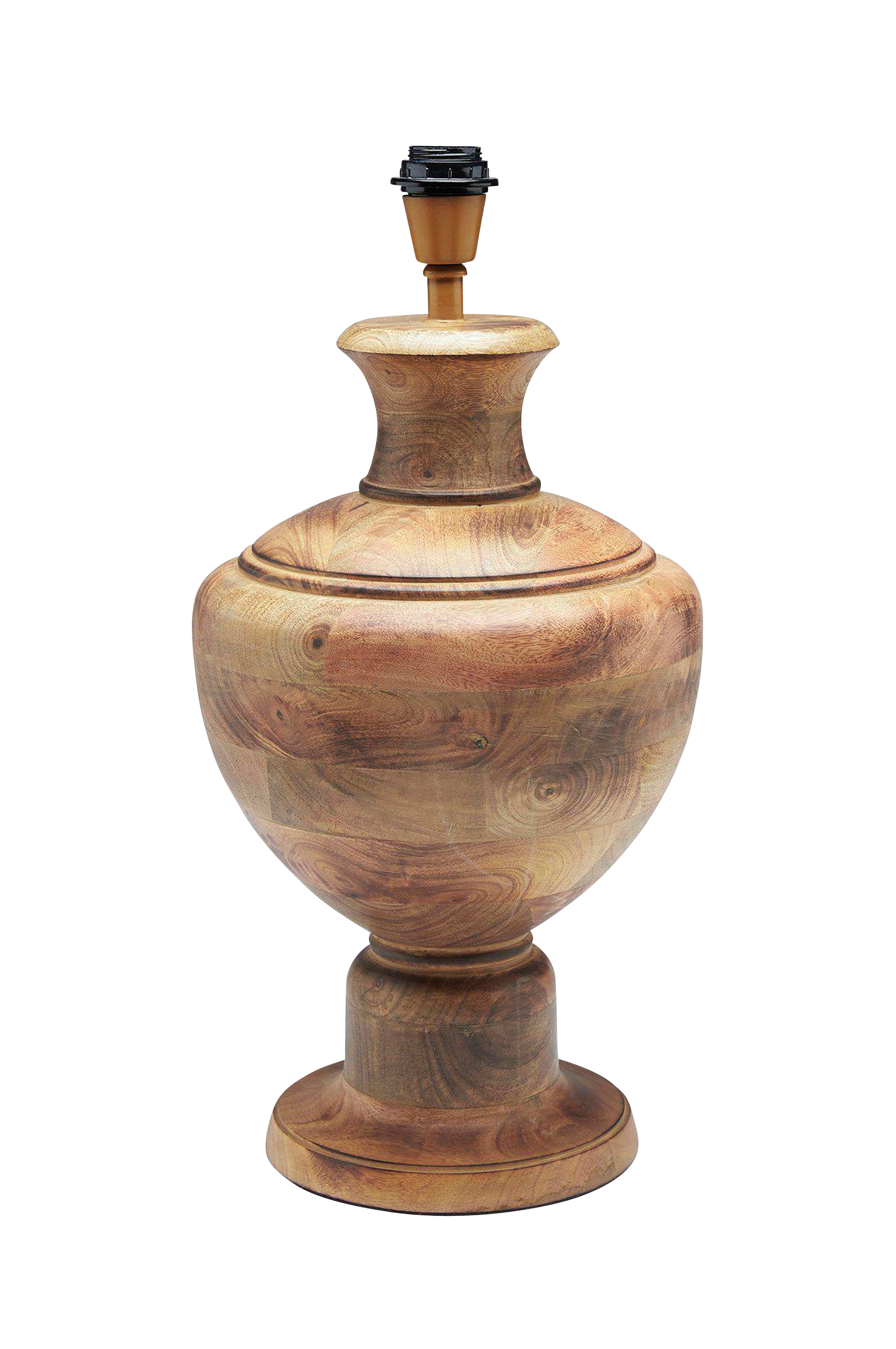 Klassinen uurnan mallinen Alma-lampunjalka mangopuuta. Korkeus 54 cm, leveys 25 cm ja syvyys 25 cm. 1,8 m:n muovijohto, jossa katkaisin n. 30 cm:n päässä valaisimesta. E27-lampunkanta. Enintään 40 W. IP20. Lamppu ei sisälly toimitukseen. Valaisimeen sopii halkaisijaltaan 35 cm:n kokoinen varjostin.