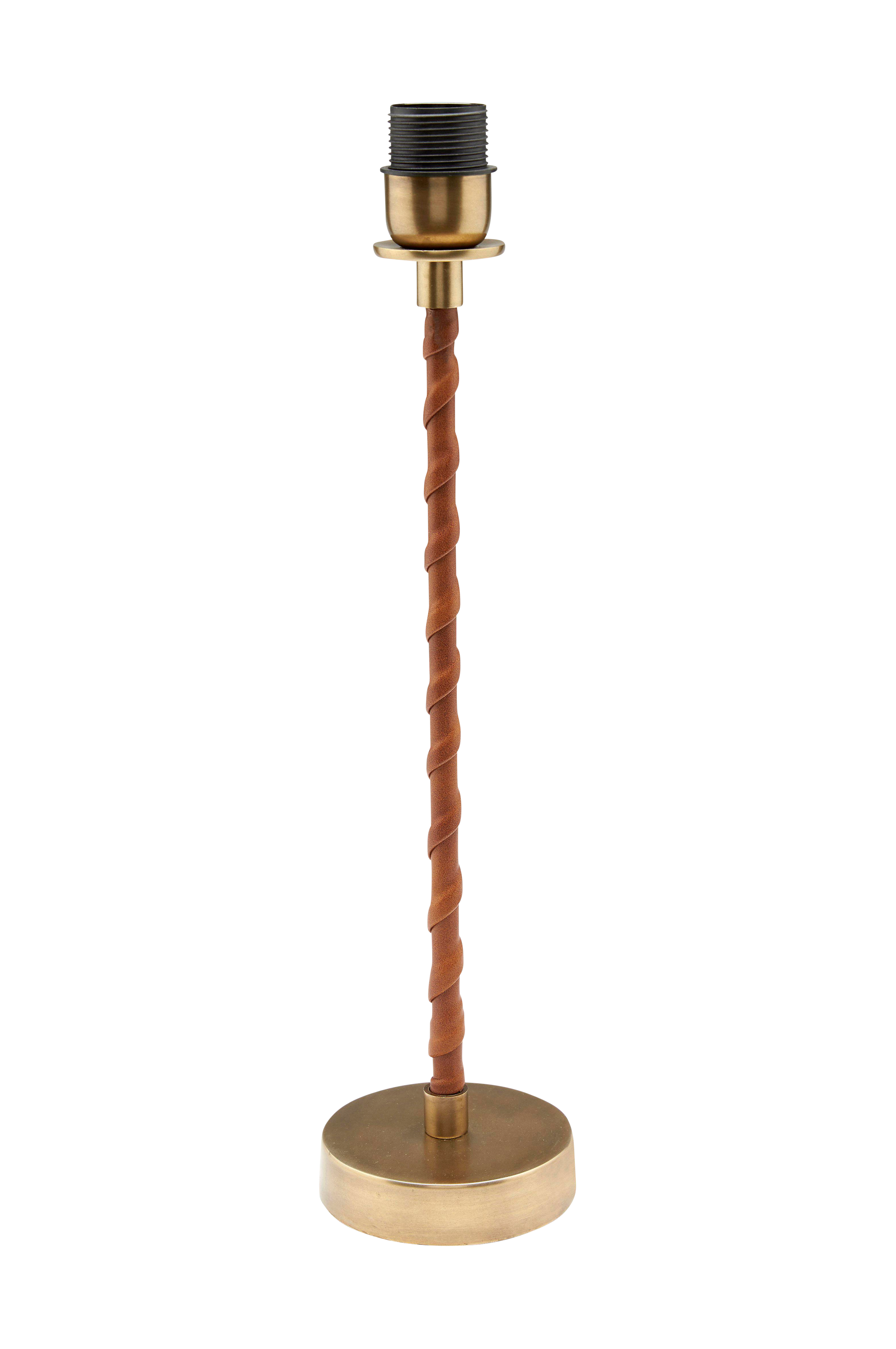 Metallinen antiikkimessinginvärinen Nora-lampunjalka, jossa tekonahkanauhaa rungon ympärillä. Yksinkertaisen kaunis klassinen muotoilu. Musta 160 cm:n kangasjohto, jossa virtakatkaisin. Korkeus 46 cm ja halkaisija 11 cm. E27-lampunkanta. Enintään 40 W. IP20. Sopii varjostimeen, jonka halkaisija on enintään 20 cm. Ei sisällä lamppua.