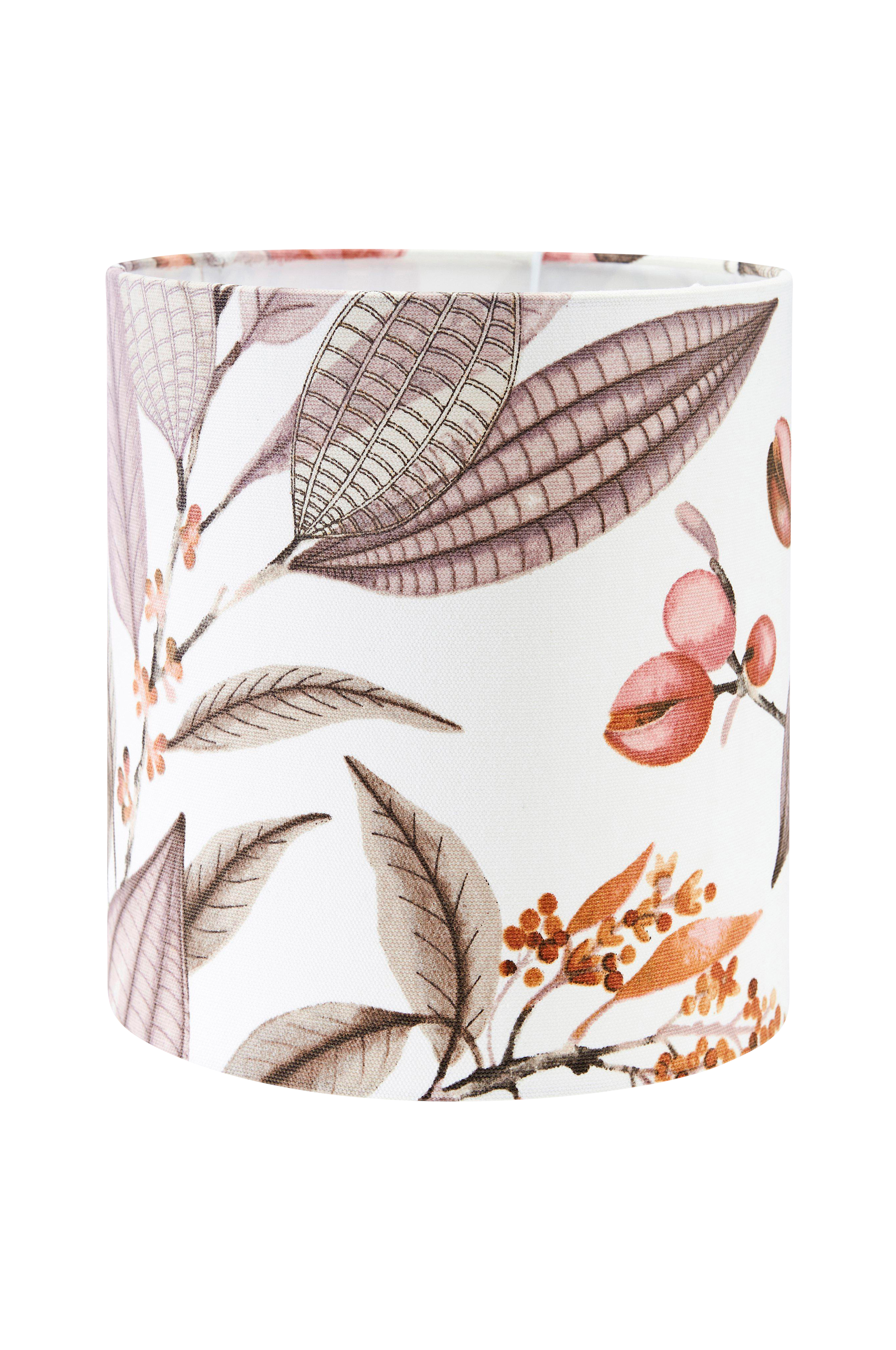 Cely-lampunvarjostin kuviollista puuvillakangasta. Varjostimessa on painettu lehtikuvio ja vaalea sisäpinta, joka saa valon loistamaan kauniisti. Kartion muotoisessa lampunvarjostimessa on E27-rengaskiinnike.