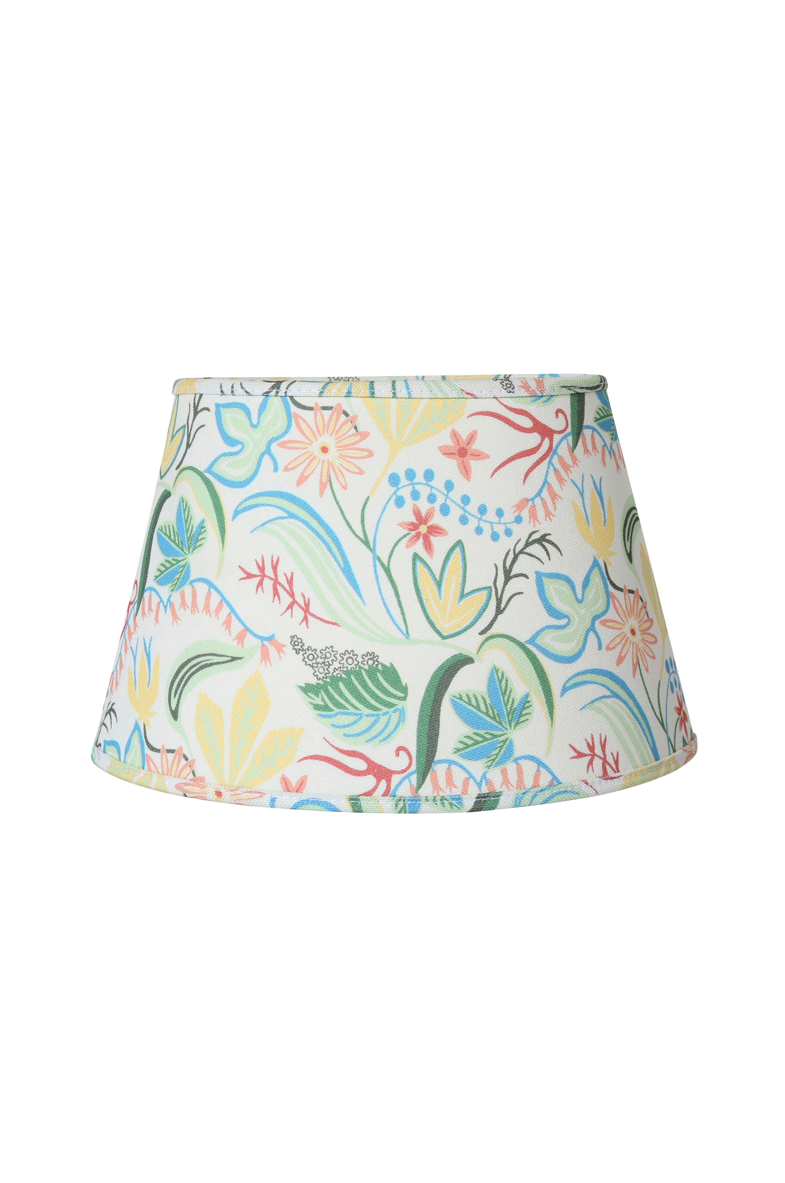 Indi-lampunvarjostin on ovaali varjostin Joy Zandénin ainutlaatuista, keväistä Särö-puuvillakangasta. Lampunvarjostimessa on vaalea sisäpinta ja pallolampun kiinnike. Korkeus 13 cm. Leveys alhaalta 20 cm, ylhäältä 14 cm. Syvyys alhaalta 15 cm, ylhäältä 10 cm.