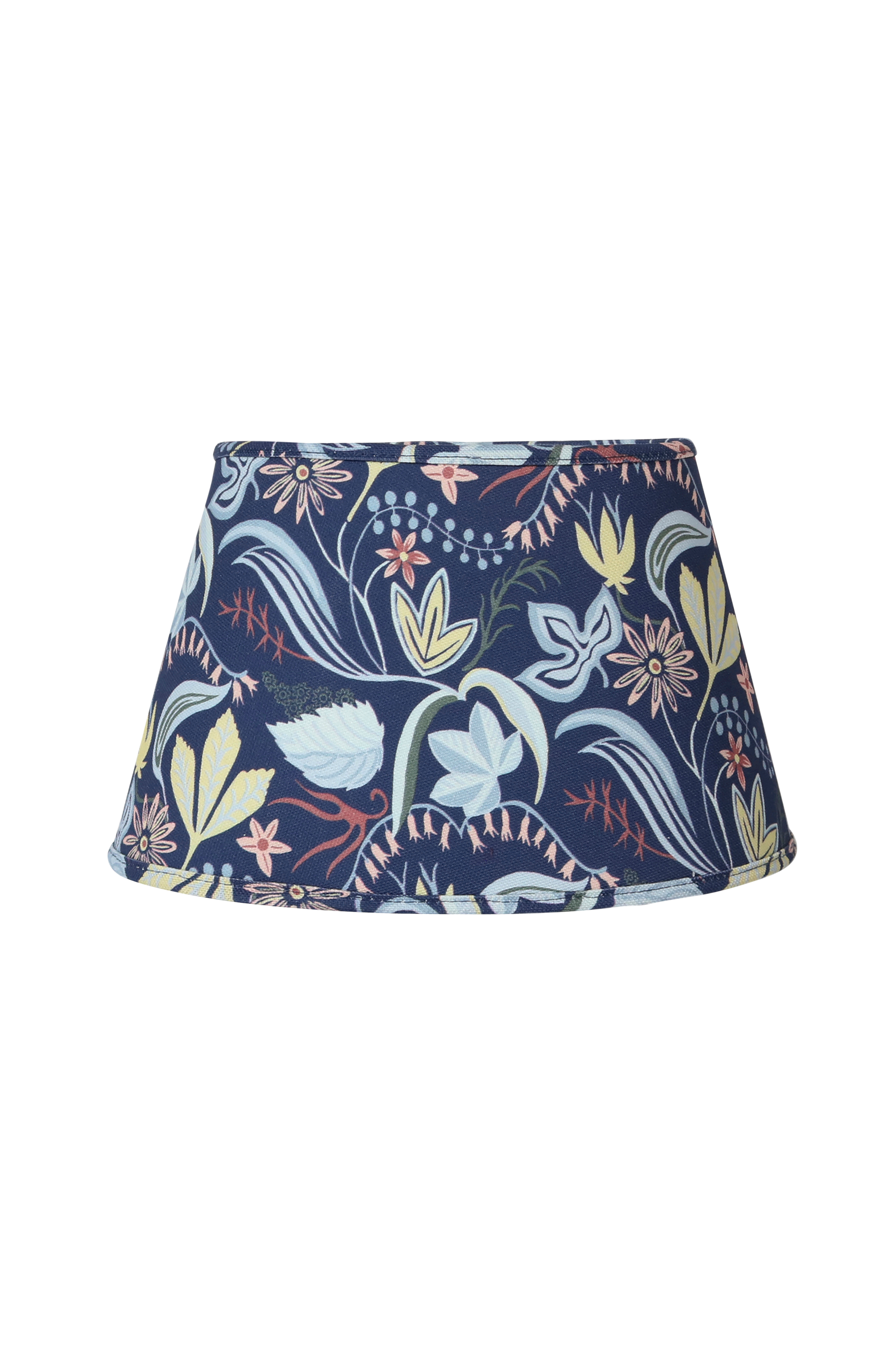 Indi-lampunvarjostin on ovaali varjostin Joy Zandénin ainutlaatuista, keväistä Särö-puuvillakangasta. Lampunvarjostimessa on vaalea sisäpinta ja pallolampun kiinnike. Korkeus 15 cm. Leveys alhaalta 24 cm, ylhäältä 17 cm. Syvyys alhaalta 18 cm, ylhäältä 11 cm.
