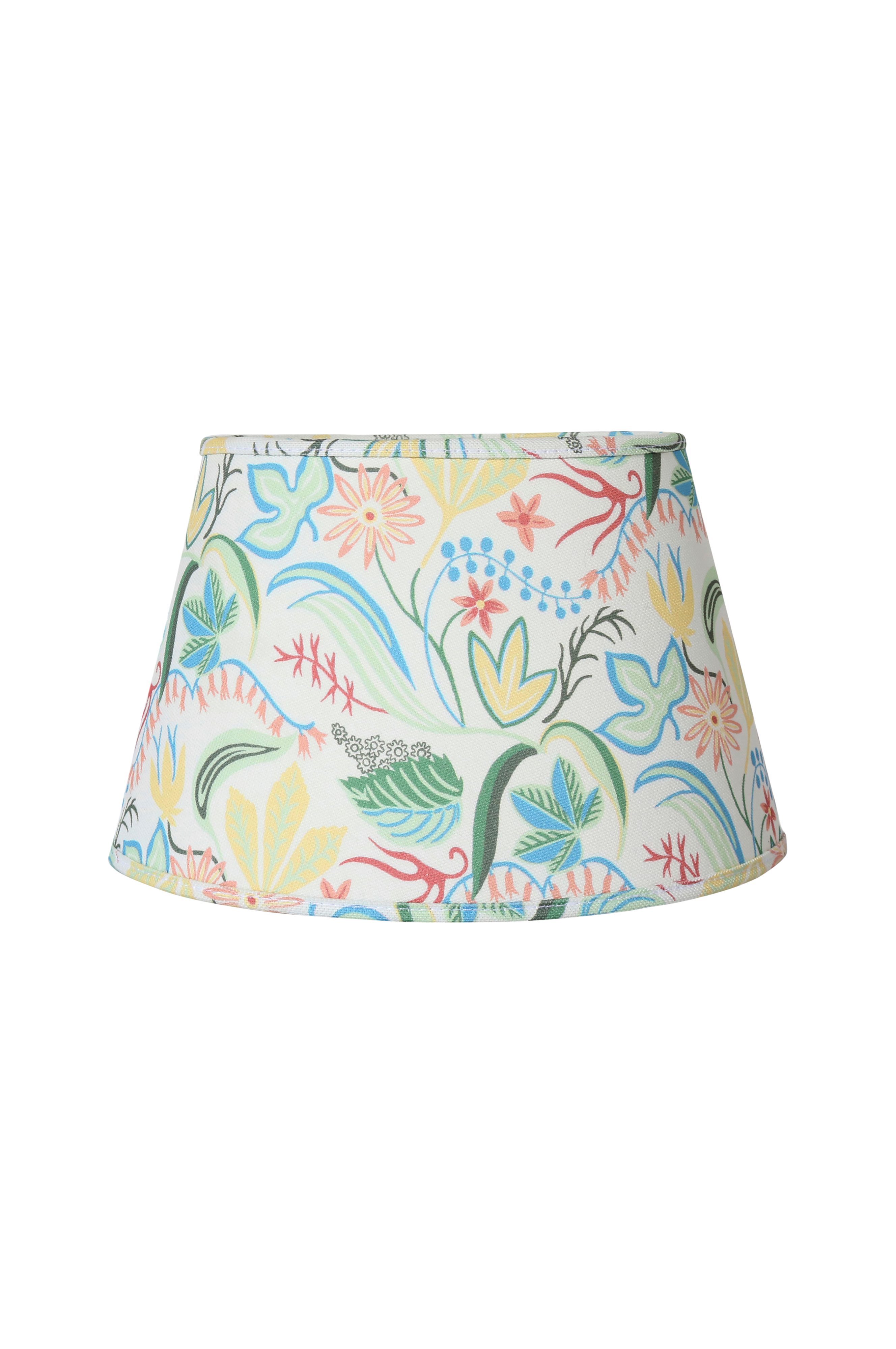 Indi-lampunvarjostin on ovaali varjostin Joy Zandénin ainutlaatuista, keväistä Särö-puuvillakangasta. Lampunvarjostimessa on vaalea sisäpinta ja pallolampun kiinnike. Korkeus 15 cm. Leveys alhaalta 24 cm, ylhäältä 17 cm. Syvyys alhaalta 18 cm, ylhäältä 11 cm.
