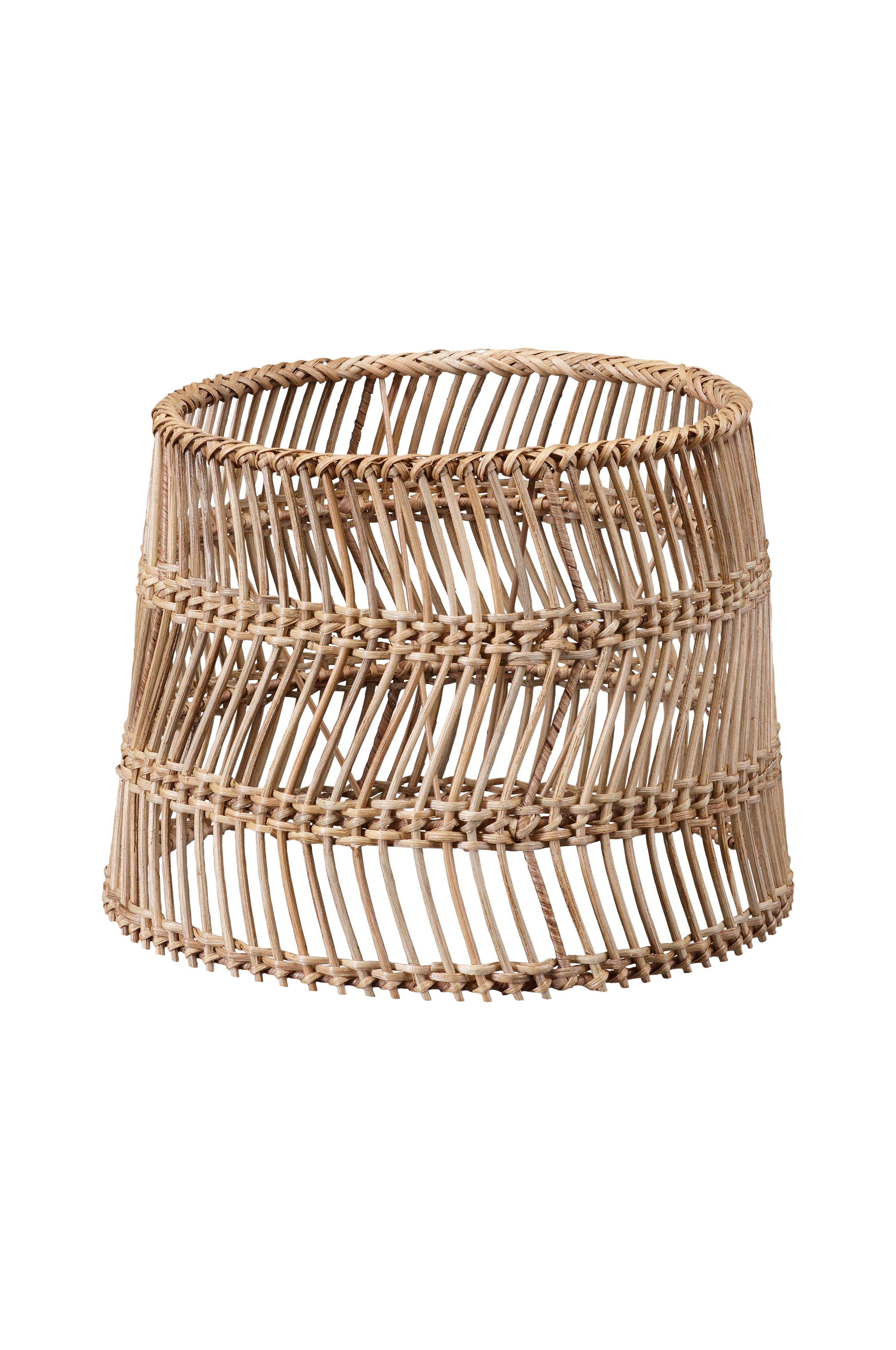 Maja-lampunvarjostin punottua rottinkia. Varjostimessa on E27-rengaskiinnike. Luonnonmateriaalin väri voi vaihdella, ja käsintehdyissä varjostimissa voi esiintyä pieniä kokoeroja. Korkeus 23 cm, halkaisija alhaalta 30 cm ja ylhäältä 25 cm.