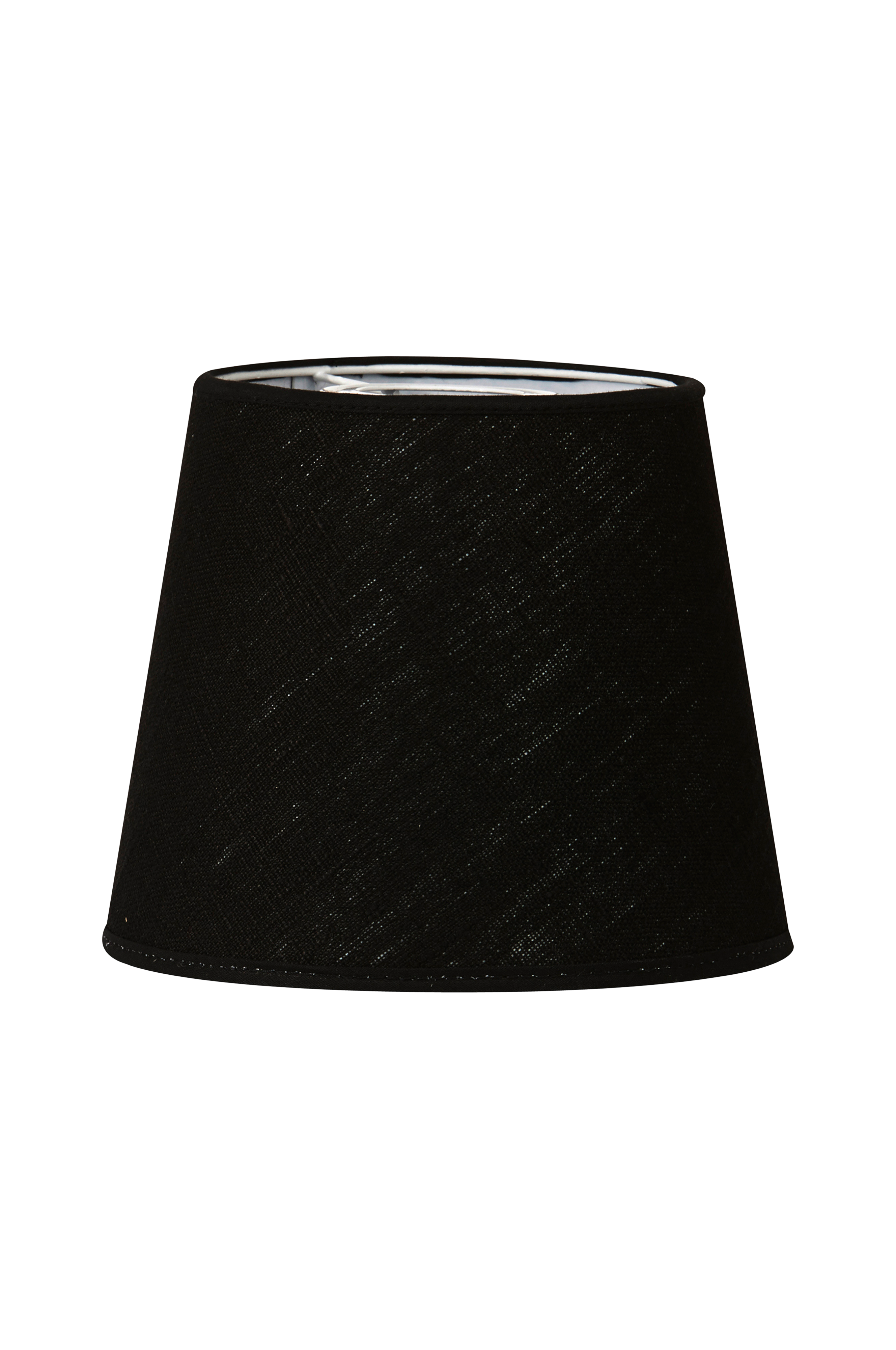 Mia-lampunvarjostin, jossa kippikiinnike. Pyöreä varjostin sopii pienehköihin lampunjalkoihin, kun valon ei haluta suuntautuvan liiaksi ylöspäin. Korkeus 17 cm ja halkaisija 20/14 cm. Materiaali: Cotton Half panama