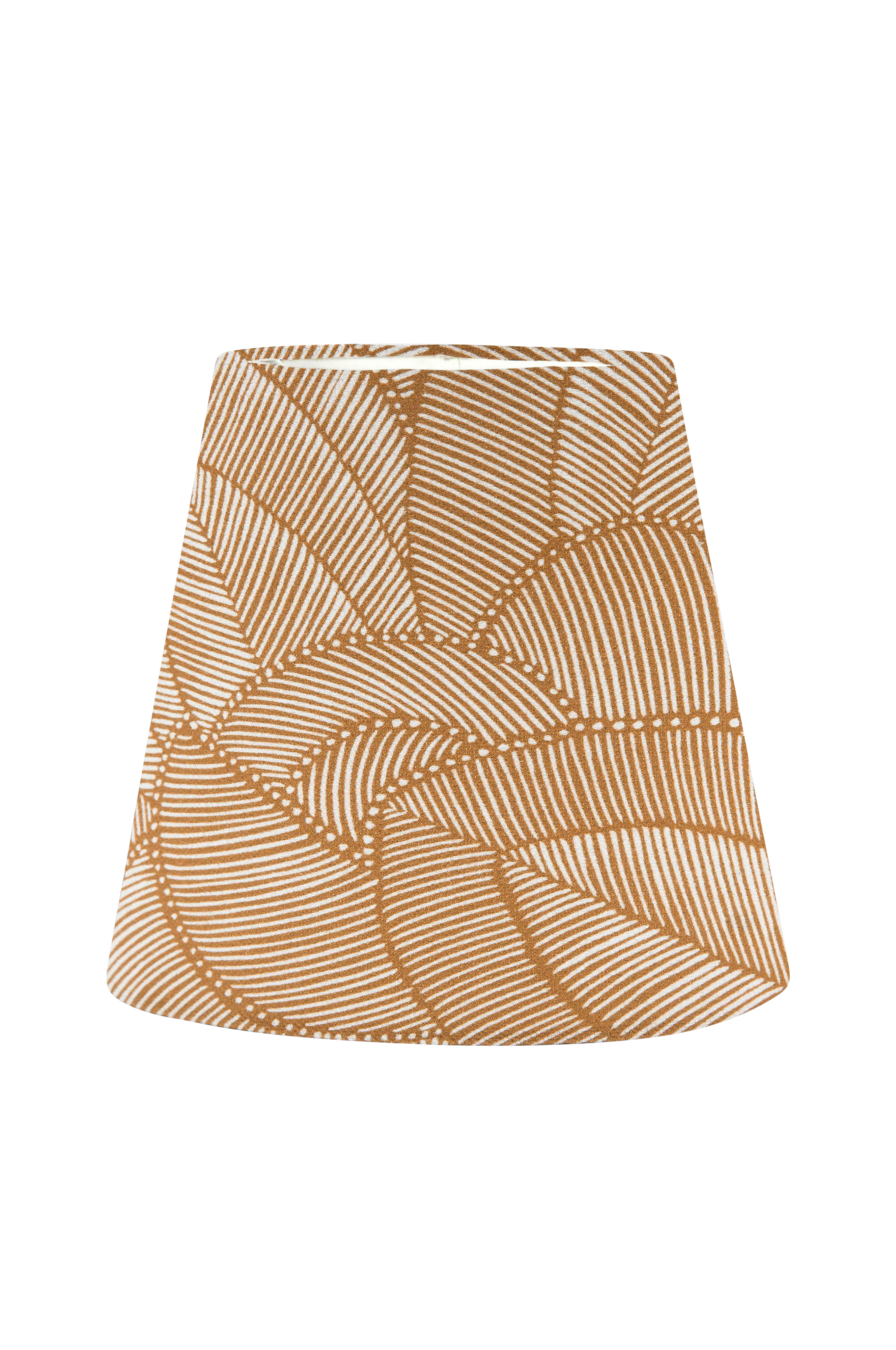 Mia-lampunvarjostin puuvillaa, jossa ihastuttava kuvio. Lampunvarjostimessa on valonlähteeseen kiinnitettävä pallolampun kiinnike. Korkeus 17 cm, halkaisija alhaalta 20 cm, ylhäältä 14 cm.