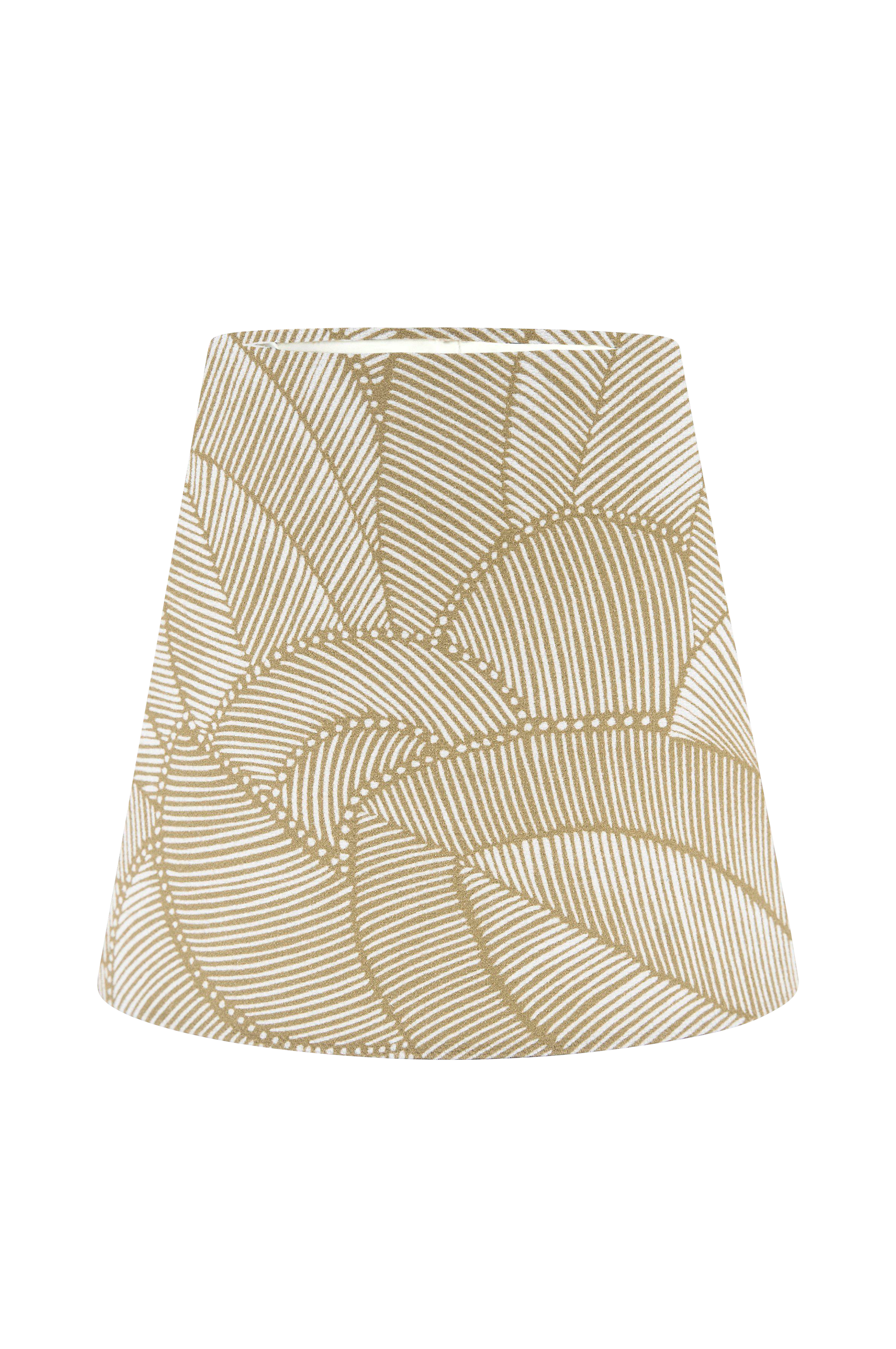 Mia-lampunvarjostin puuvillaa, jossa ihastuttava kuvio. Lampunvarjostimessa on valonlähteeseen kiinnitettävä pallolampun kiinnike. Korkeus 17 cm, halkaisija alhaalta 20 cm, ylhäältä 14 cm.