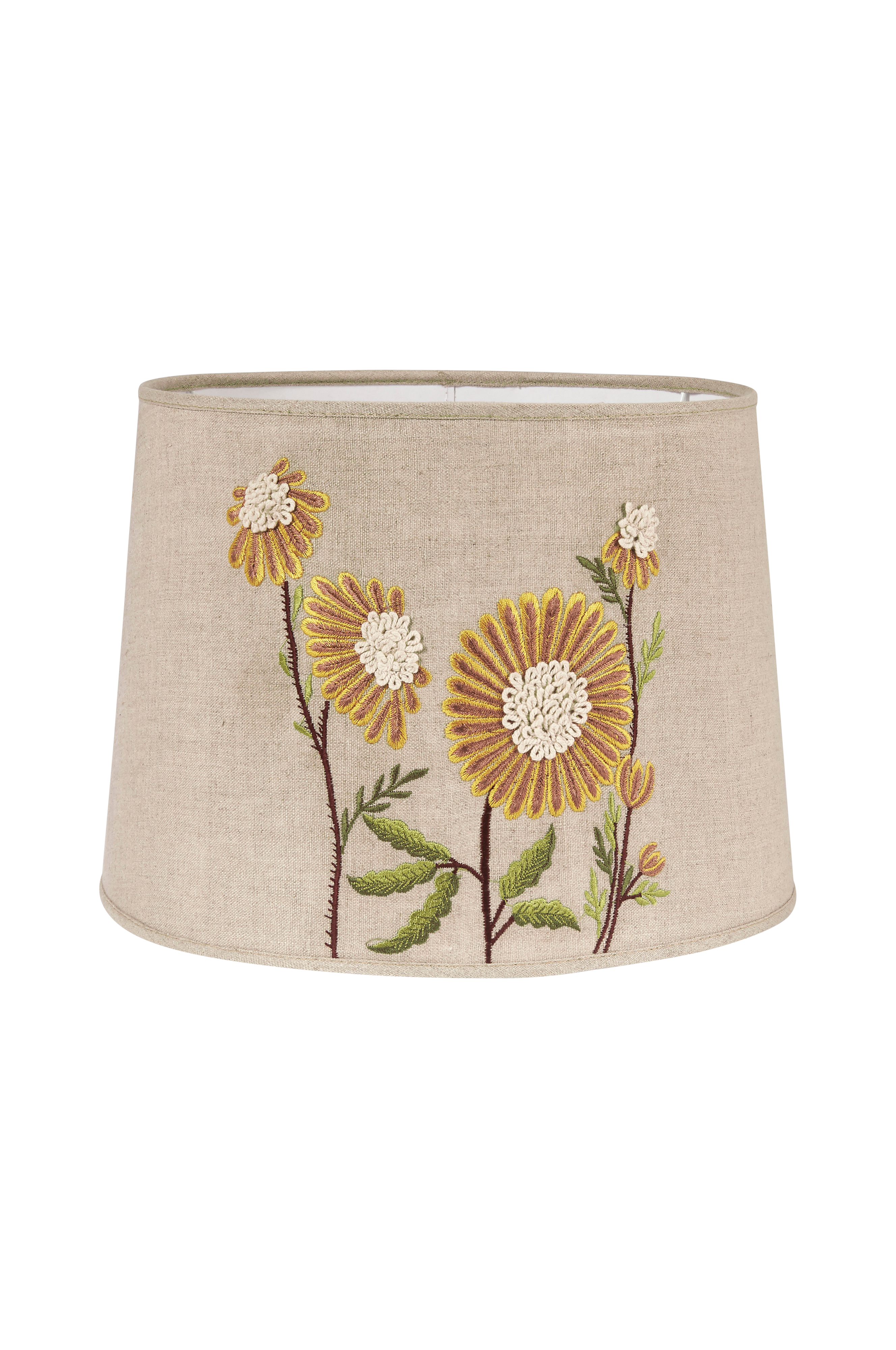 Sofia-lampunvarjostin pellavaa, jossa kirjailua. Käsintehty. Korkeus 25 cm ja halkaisija 35/30 cm.