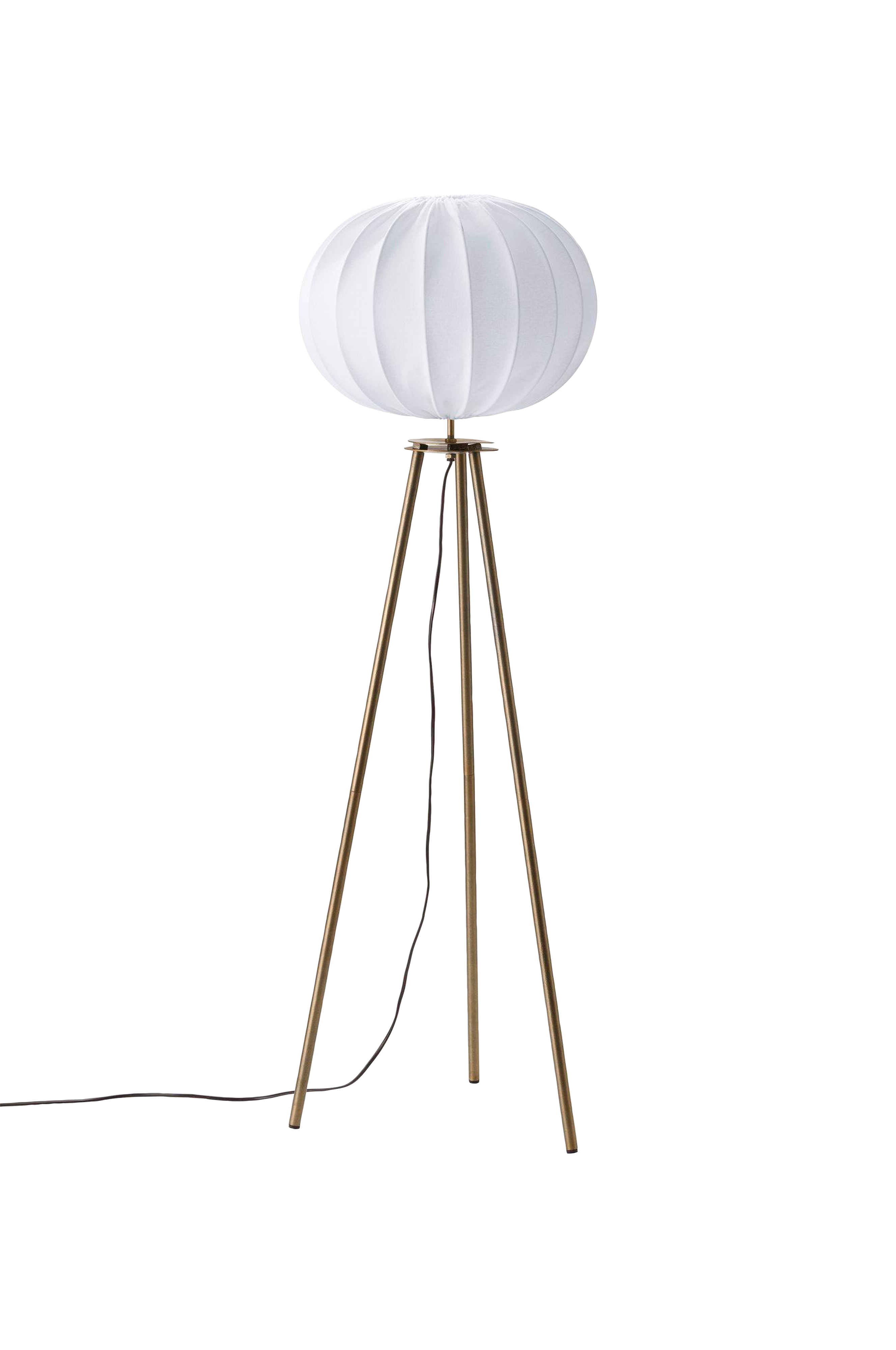 Lattiavalaisin base, kolmijalkainen metallinen lattiavalaisin, ns. kolmijalka, valkoisella puuvillaisella hilma-varjostimella. Lampunvarjostimen halkaisija 40cm. korkeus 125cm, pohja 40x40cm. 3,4 m musta muovijohto, jossa lattiakytkin, joka on sijoitettu n. 130 cm etäisyydelle lampunpitimestä. E27-pistorasia. Max 25w. Ip20. Valonlähde ja lampunvarjostin eivät sisälly. Lattiavalaisin on helppo koota.
