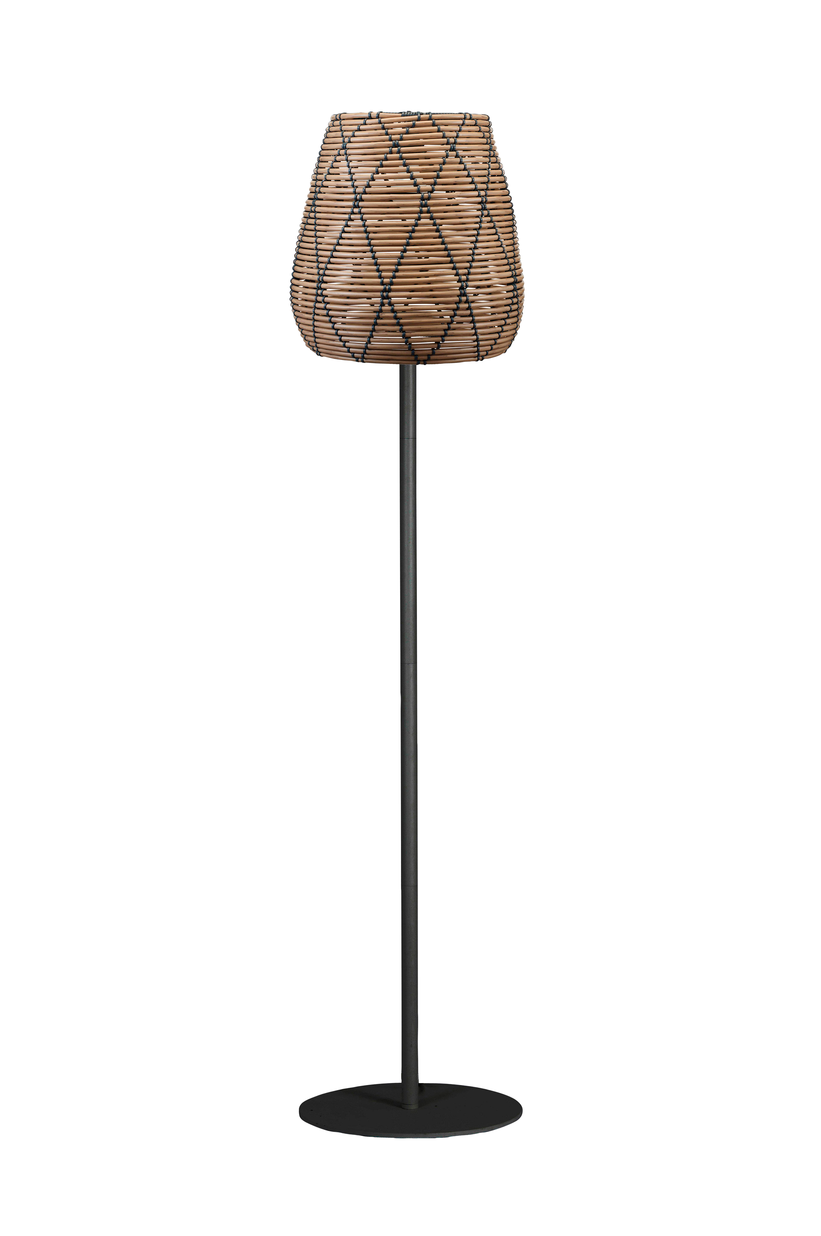 Agnar-lattiavalaisin, jossa luonnonvärinen/musta Lollo-varjostin. Molemmat soveltuvat ulkokäyttöön. Jalassa on E27-lampunpidike enintään 18 watin valonlähteelle. Valonlähteen ja lampunpidikkeen päällä on läpikuultava muovikansi ja tiiviste suojaamassa niitä kosteudelta. Punottu lampunvarjostin luo kauniin valojen leikin. Lampunvarjostin on valmistettu säänkestävästä polyrottingista. Varjostin kiinnitetään lampunjalkaan erikoiskiinnikkeen avulla.