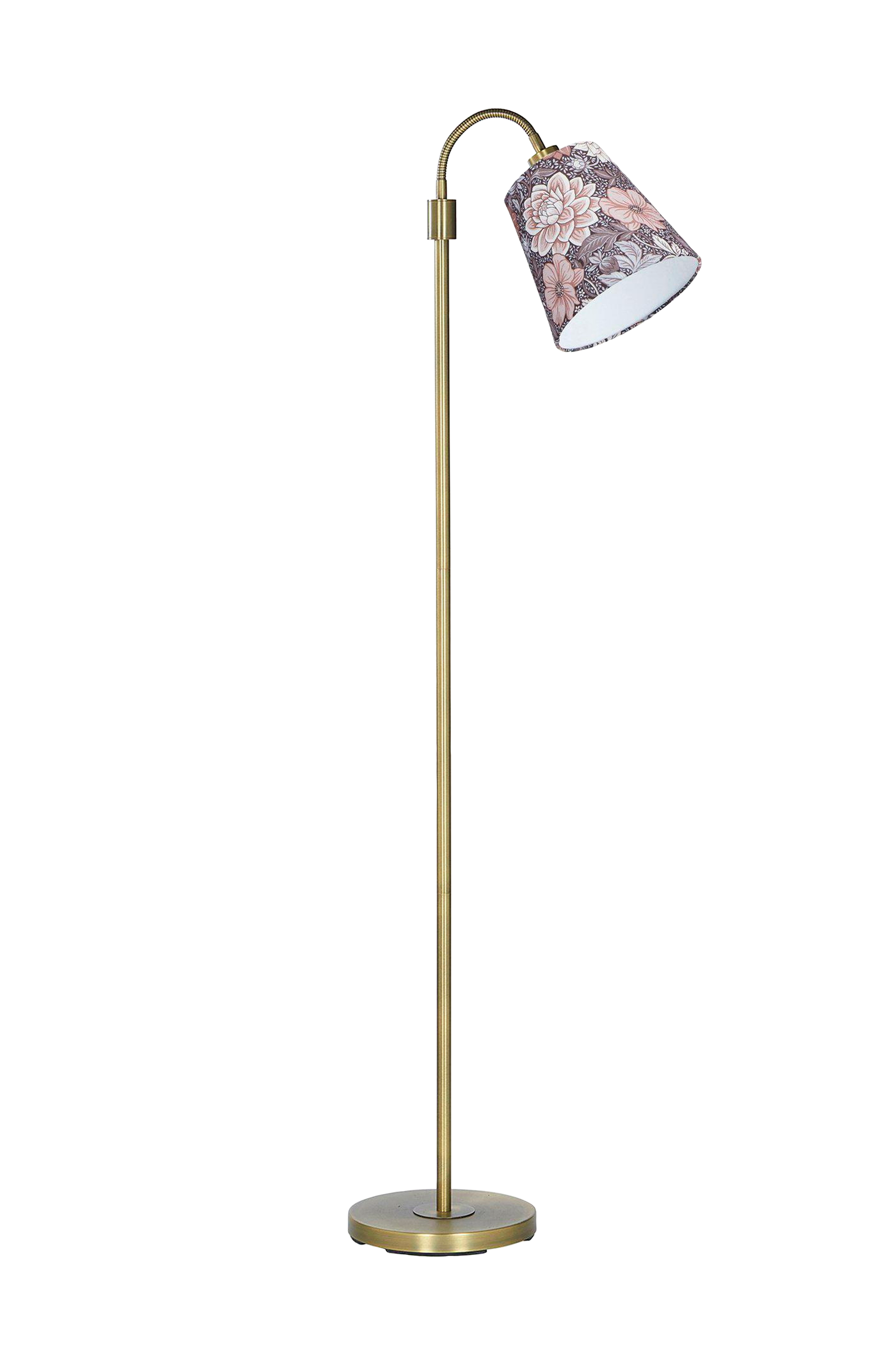 Lattiavalaisin amy flex metallia, mukaan lukien cia top fit varjostin. Varjostimessa on kuvio, rauhallisella ja rauhoittavalla värillä, boråstapeterista. Lampunvarjostimen mitat: halkaisija alhaalla 20 cm, yläreunassa 13 cm ja korkeus 19 cm. E27 yläasennus. Valaisin toimitetaan knock-down-versiona ja se on helppo koota. Lattiavalaisimen yläosassa on säädettävä varsi, jossa on e27-lamppukanta, max 25w, jossa myös kytkin sijaitsee. 190 cm pitkä johto seinäpistorasialla. Valonlähde ostetaan erikseen. Korkeus 150 cm.