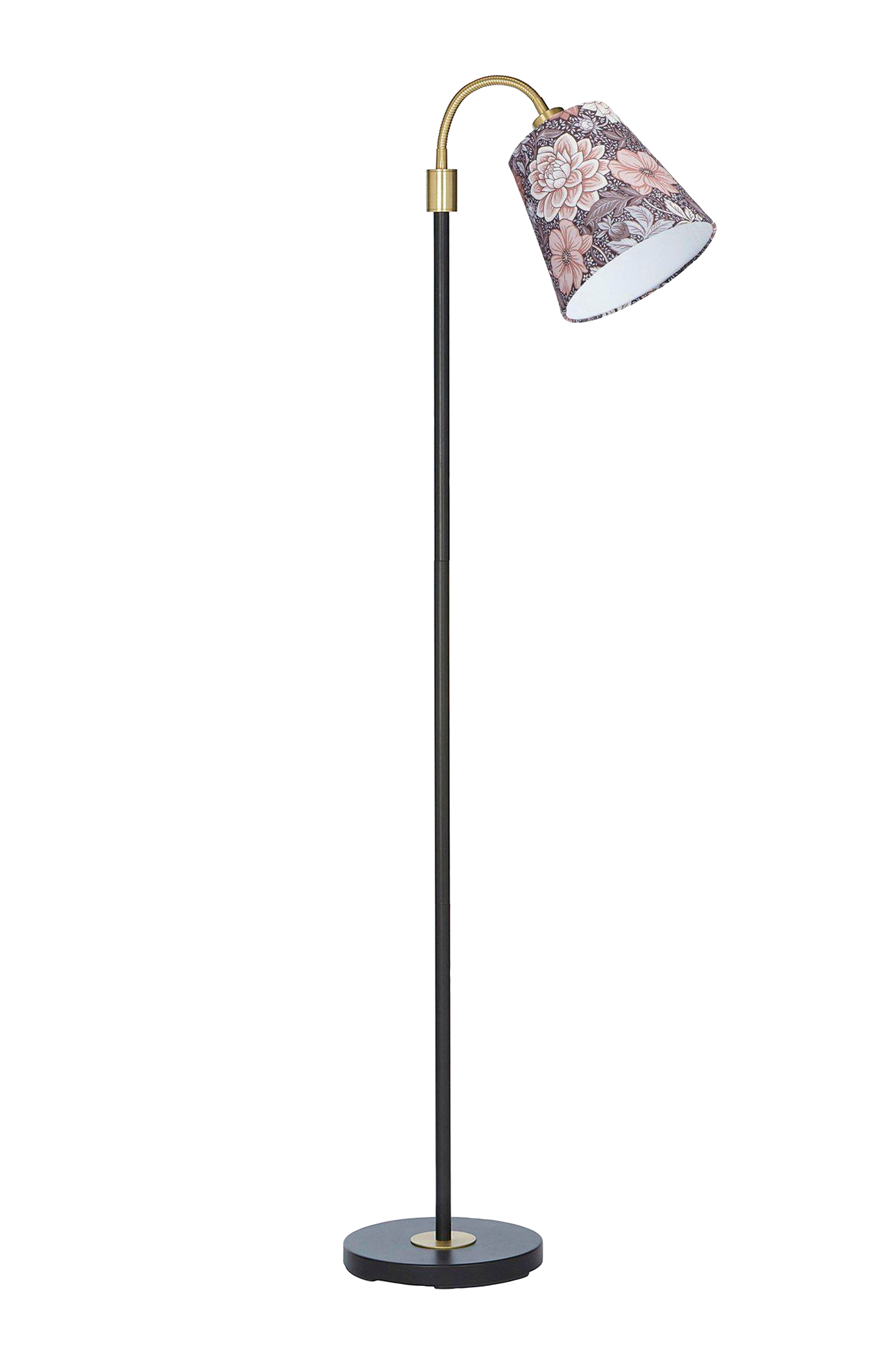 Lattiavalaisin amy flex metallia, mukaan lukien cia top fit varjostin. Varjostimessa on kuvio, rauhallisella ja rauhoittavalla värillä, boråstapeterista. Lampunvarjostimen mitat: halkaisija alhaalla 20 cm, yläreunassa 13 cm ja korkeus 19 cm. E27 yläasennus. Valaisin toimitetaan knock-down-versiona ja se on helppo koota. Lattiavalaisimen yläosassa on säädettävä varsi, jossa on e27-lamppukanta, max 25w, jossa myös kytkin sijaitsee. 190 cm pitkä johto seinäpistorasialla. Valonlähde ostetaan erikseen. Korkeus 150 cm.