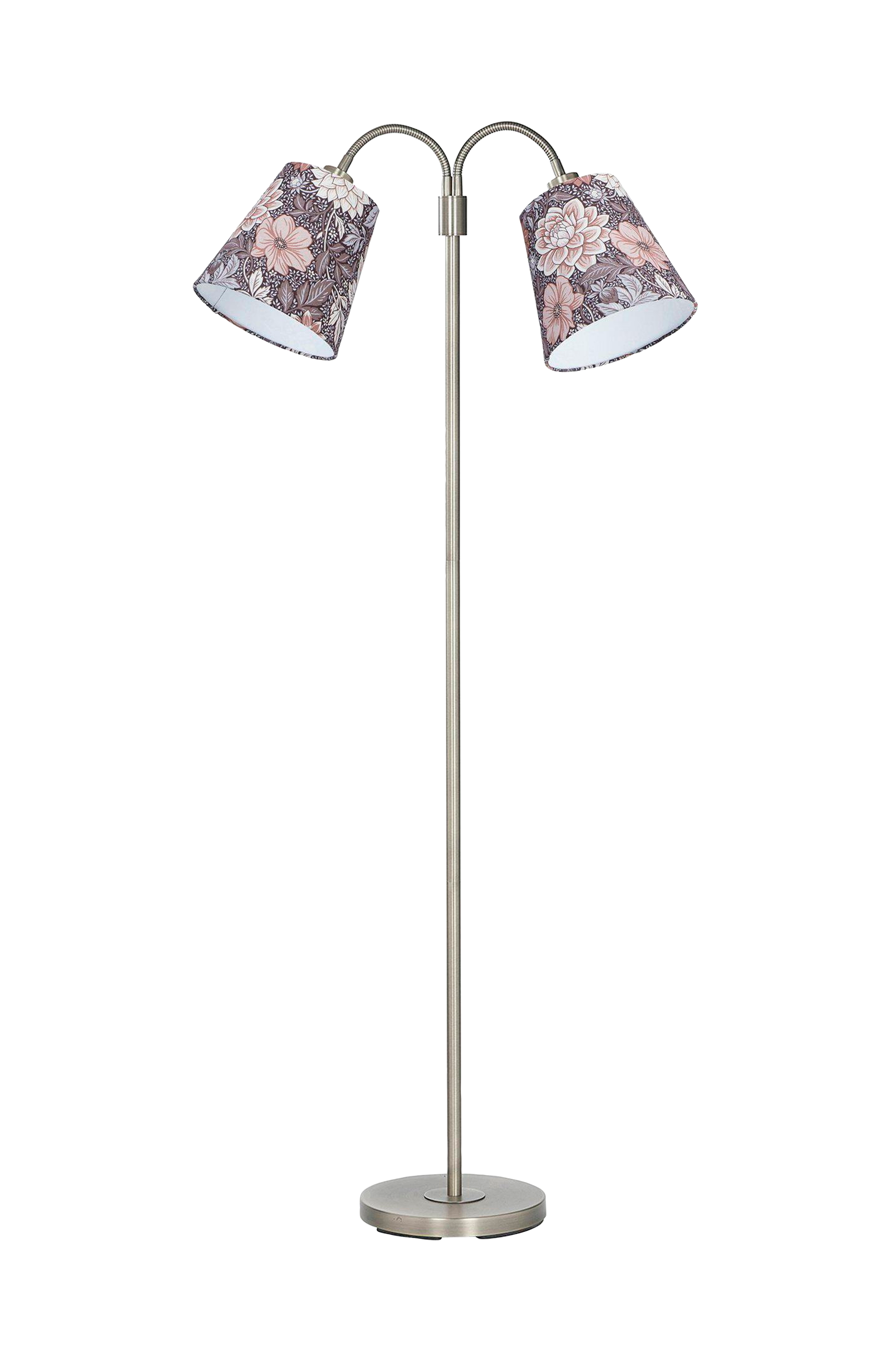 Amy lattiavalaisin metallista, mukaan lukien cia top fit varjostin. Varjostimissa on kuvio, rauhallinen ja rauhoittava väri, boråstapeter. Lampunvarjostimen mitat: halkaisija alhaalla 20 cm, yläreunassa 13 cm ja korkeus 19 cm. E27 yläasennus. Valaisin toimitetaan knock-down-versiona ja se on helppo koota. Lattiavalaisimen yläosassa on kaksi säädettävää vartta, joissa on e27-lamppukanta, max 25w, ja kytkin toisessa varressa. 190 cm pitkä johto seinäpistorasialla. valonlähde ostetaan erikseen. Korkeus 150 cm.