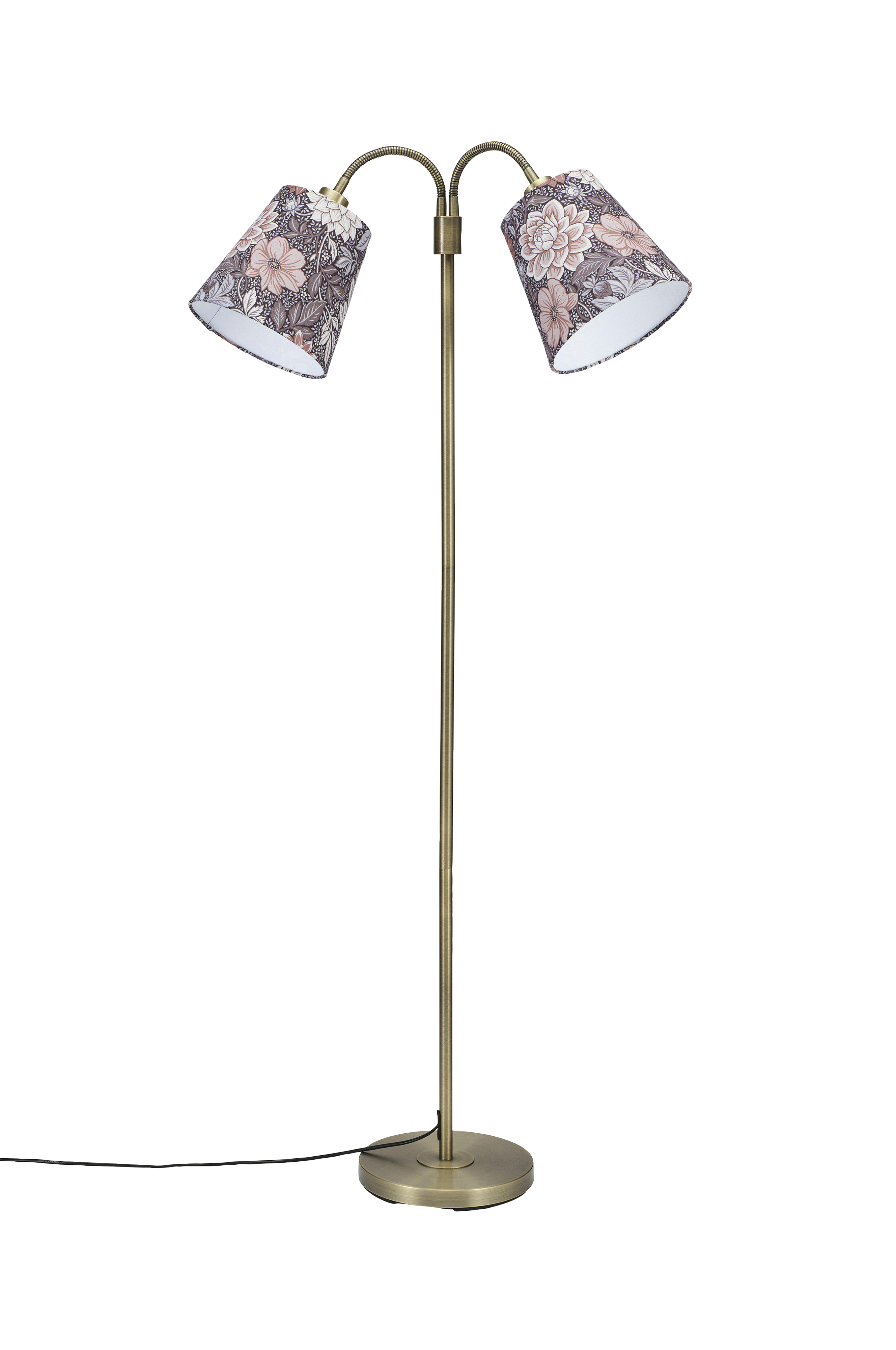 Yksinkertainen ja klassinen metallinen lattiavalaisin, jossa on kaksi säädettävää varsijalkaa ja lampunvarjostin dahlia garden Boråstapeterilta. Suunnittelija Jenny Hahne Gaddin käsin maalaama kuvio boråstapeterille. Anna upeiden daalioiden ja sirojen lehtien siirtyä huoneeseesi.