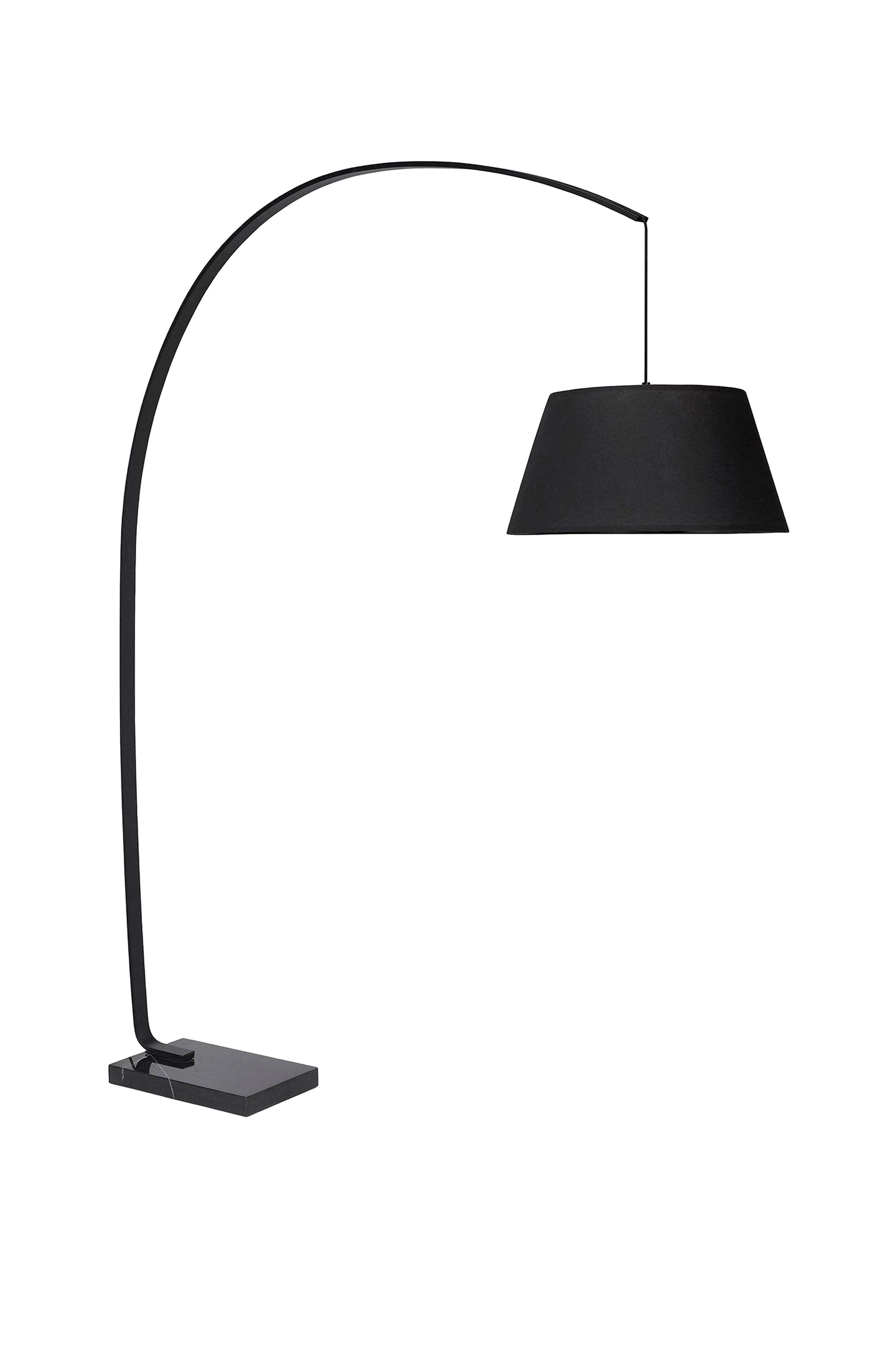 Arc-lattiavalaisin, jossa metallikaari, suorakaiteenmuotoinen marmorijalka ja kangasvarjostin. Lattiavalaisin luo upean vaikutelman ja vaikka se näyttää isolta, se voidaan sijoittaa joko sohvan tai ruokapöydän viereen luomaan miellyttävää tunnelmaa. Marmorijalka painaa 11 kg, joten valaisin seisoo vakaasti lattialla. Jalan pituus 40 cm, leveys 25 cm ja korkeus 4 cm. Metallikaari asennetaan helposti yhteen kiinnikkeellä ja ruuvilla. Johdossa on säädettävä pituus, ja se kiinnitetään kaaren taakse. Valaisimen kokonaisleveys varjostimen kanssa on 155-160 cm. Kangasvarjostin toimitetaan rullattuna, ja se suljetaan tarranauhalla. Varjostimen korkeus asennettuna on 25 cm, halkaisija ylhäältä 35 cm ja alhaalta 50 cm. Valaisimen ulkonäköä on helppo muuttaa vaihtamalla varjostimen johonkin toiseen, jossa on E27-kiinnike. Seinäpistoke, jossa lattiavirtakytkin. Helppo koota. Kuvaus mukana. E27-valonlähde tilattavissa erikseen.