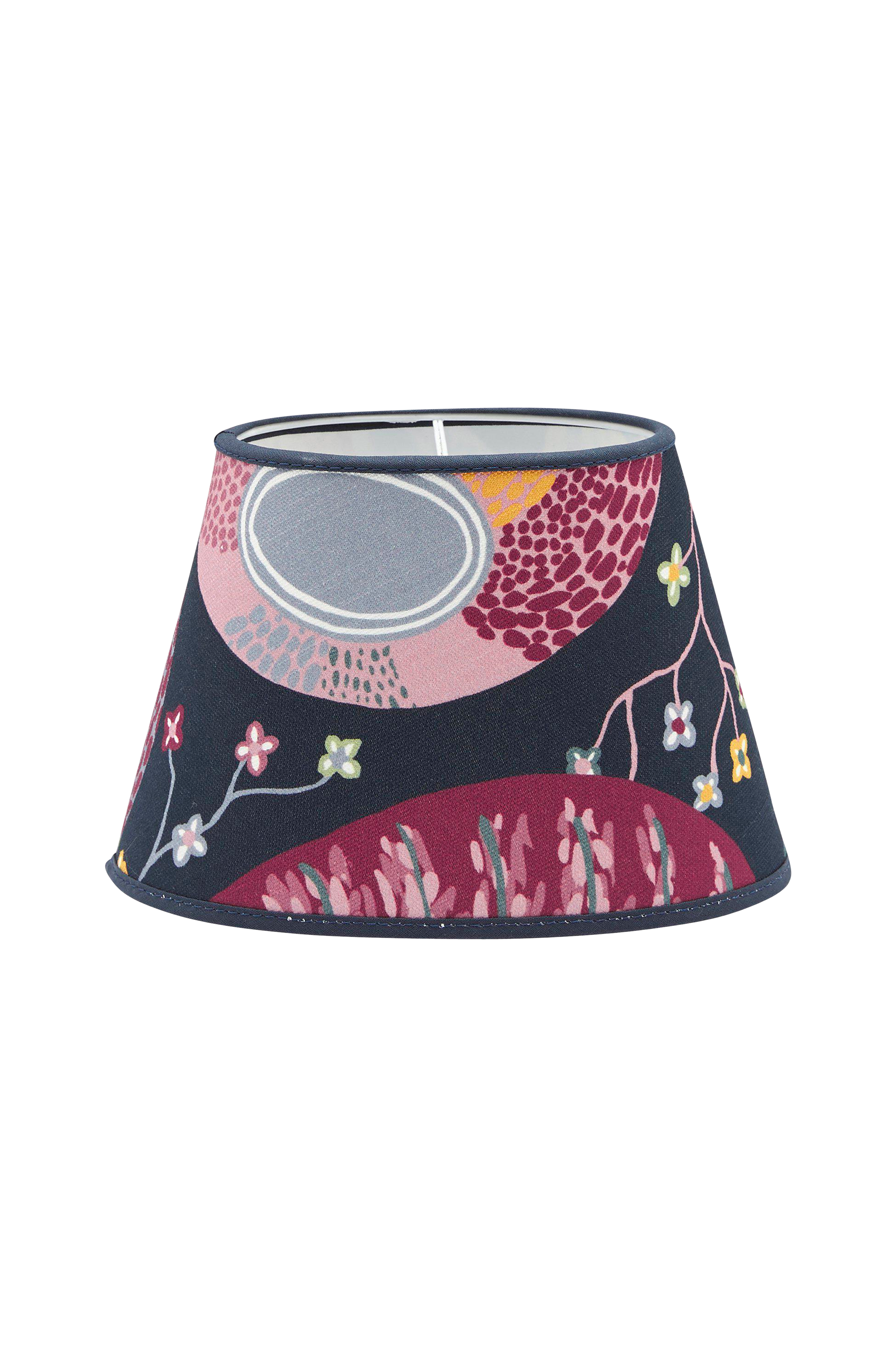 Selkeälinjainen, klassisen mallinen lampunvarjostin. Ihastuttava kuvio. Lampunvarjostimessa on valonlähteeseen kiinnitettävä pallolampun kiinnike. Korkeus 14 cm, leveys 20/13 cm ja syvyys 14/9 cm.