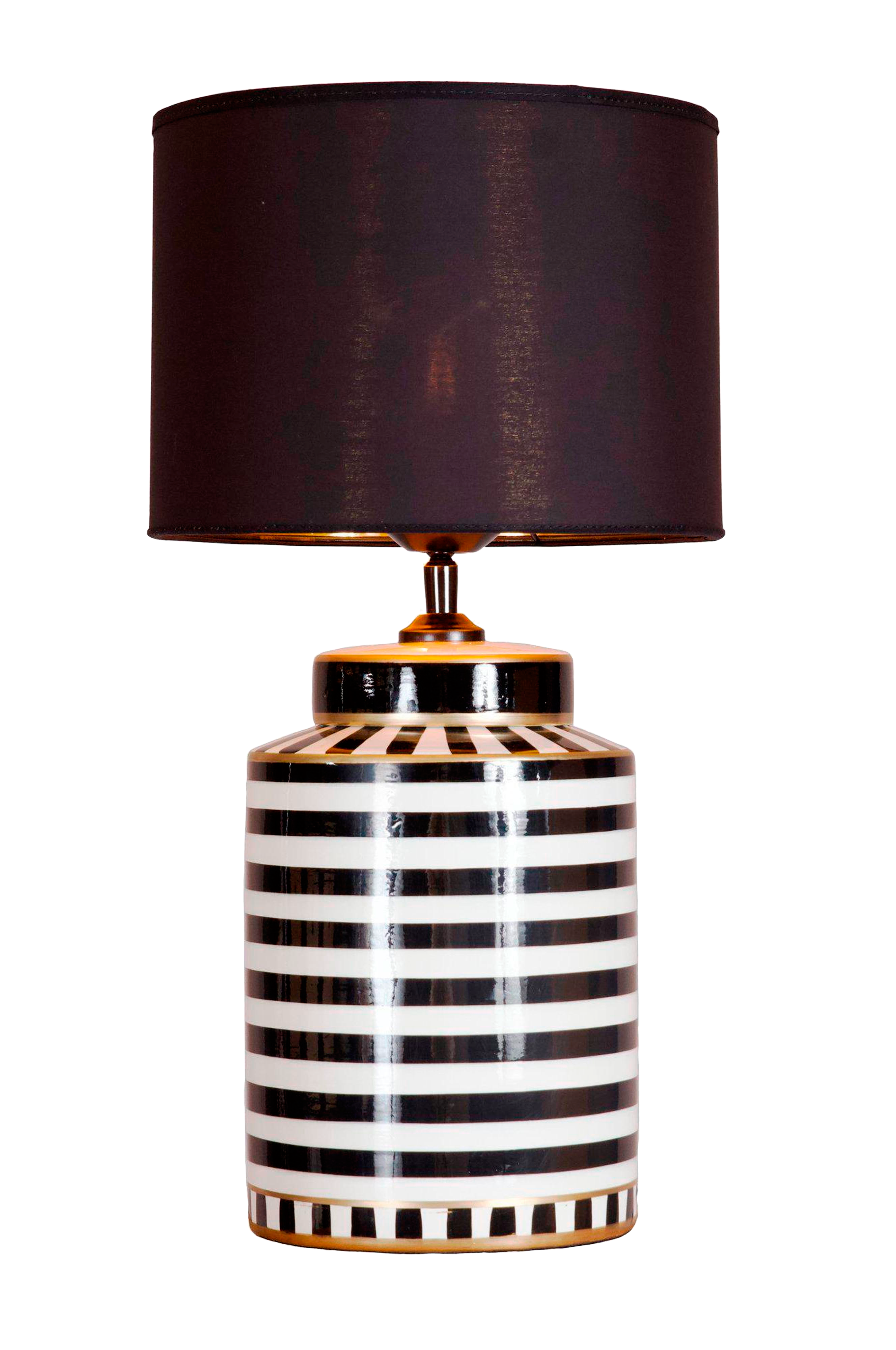 Silmiinpistävä pöytävalaisin, jossa on ajatonta eleganssia - tämä raidallinen keraaminen jalusta, jota korostaa kultainen kosketus, tuo rohkean mutta hienostuneen art deco -tunnelman mihin tahansa huoneeseen. Graafinen kontrasti ja veistoksellinen muoto tekevät siitä yhtä lailla koriste-esineen kuin valonlähteen, ja se sopii sisustukseen, jossa juhlitaan sekä historiaa että persoonallisuutta. Valaisimen korkeus on varjostin mukaan lukien 48 cm ja sylinterinmuotoisen varjostimen halkaisija on 25 cm, ja se tarjoaa tasapainoisen siluetin, joka toimii kauniisti sivupöydällä, konsolilla tai ikkunalaudalla. Valaisimessa on e27-pistorasia (max 40 W), ja sen mukana toimitetaan 180 cm pitkä musta tekstiilijohto, jossa on eurooppalainen pistoke. Kytkin on kätevästi sijoitettu 35 cm:n päähän jalustasta. Valonlähde myydään erikseen. Valaisin, joka tekee vaikutuksen - hienostunut, graafinen ja täynnä luonnetta.