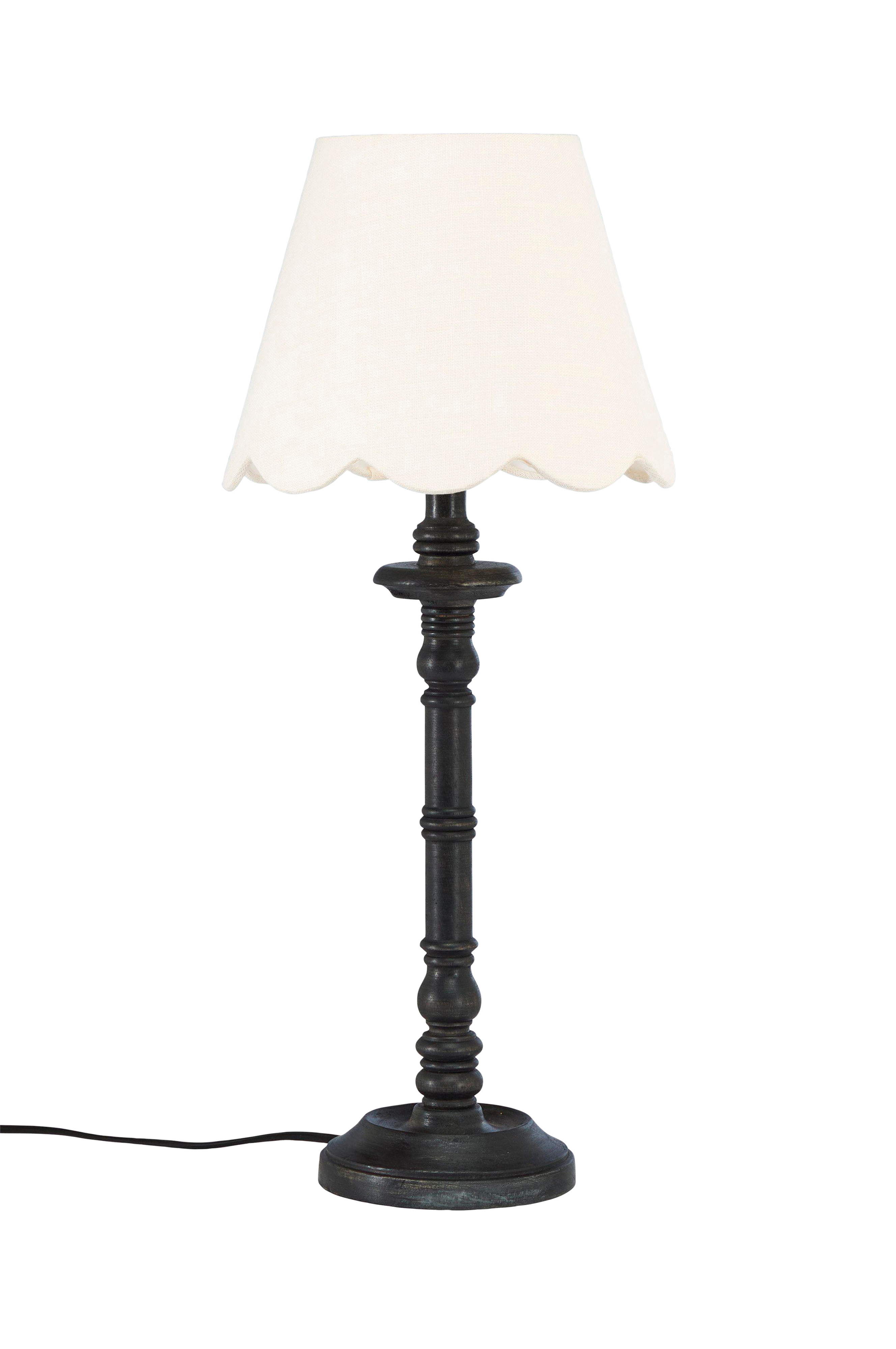Koristeellinen pöytävalaisin, johon on saatu inspiraatiota vanhoista kynttilänjaloista. Lampunjalan pinnassa on luonnollisia sävyvaihteluita, mikä tekee jokaisesta valaisimesta ainutlaatuisen. Varjostin kaunista eläväpintaista pellavakangasta. Varjostin on hieman levenevä ja alareunastaan aaltomainen. 1,8 m:n muovijohto, jossa virtakatkaisin. E27-lampunkanta.
