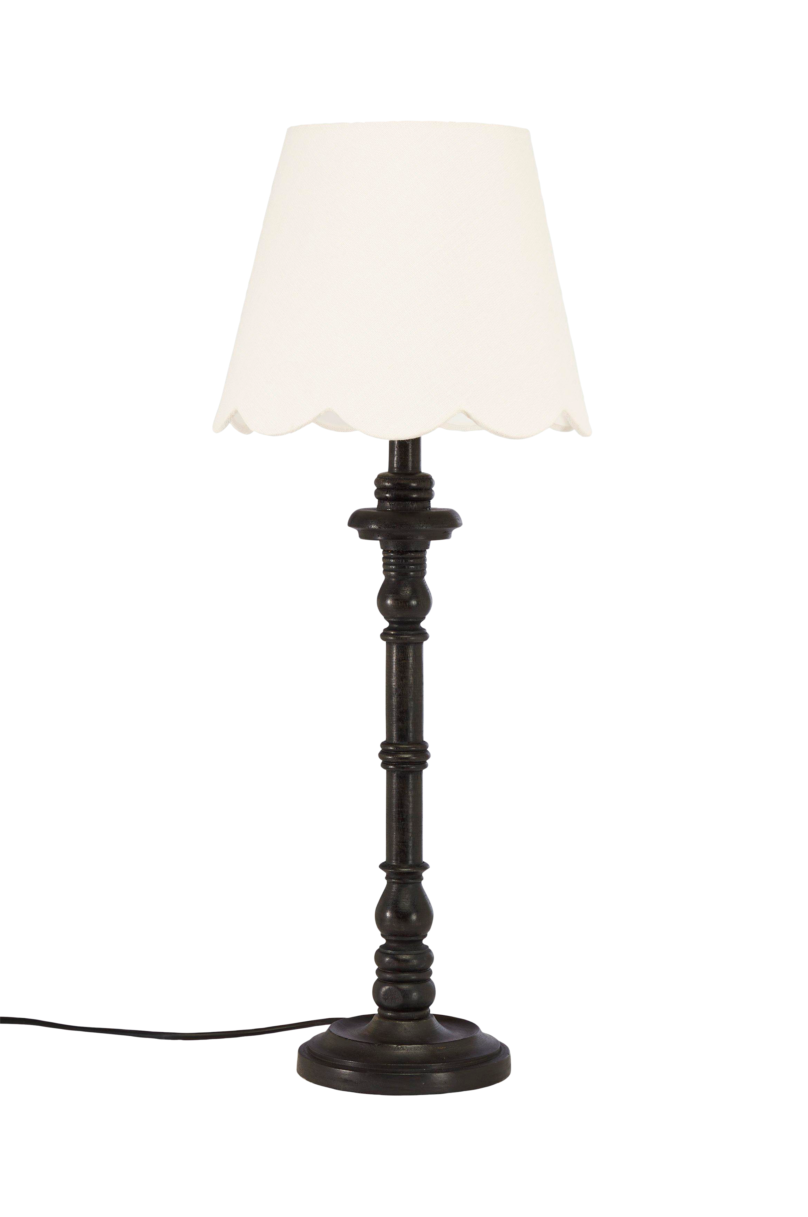 Koristeellinen pöytävalaisin, johon on saatu inspiraatiota vanhoista kynttilänjaloista. Lampunjalan pinnassa on luonnollisia sävyvaihteluita, mikä tekee jokaisesta valaisimesta ainutlaatuisen. Varjostin kaunista eläväpintaista pellavakangasta. Varjostin on hieman levenevä ja alareunastaan aaltomainen. 1,8 m:n muovijohto, jossa virtakatkaisin. E27-lampunkanta.