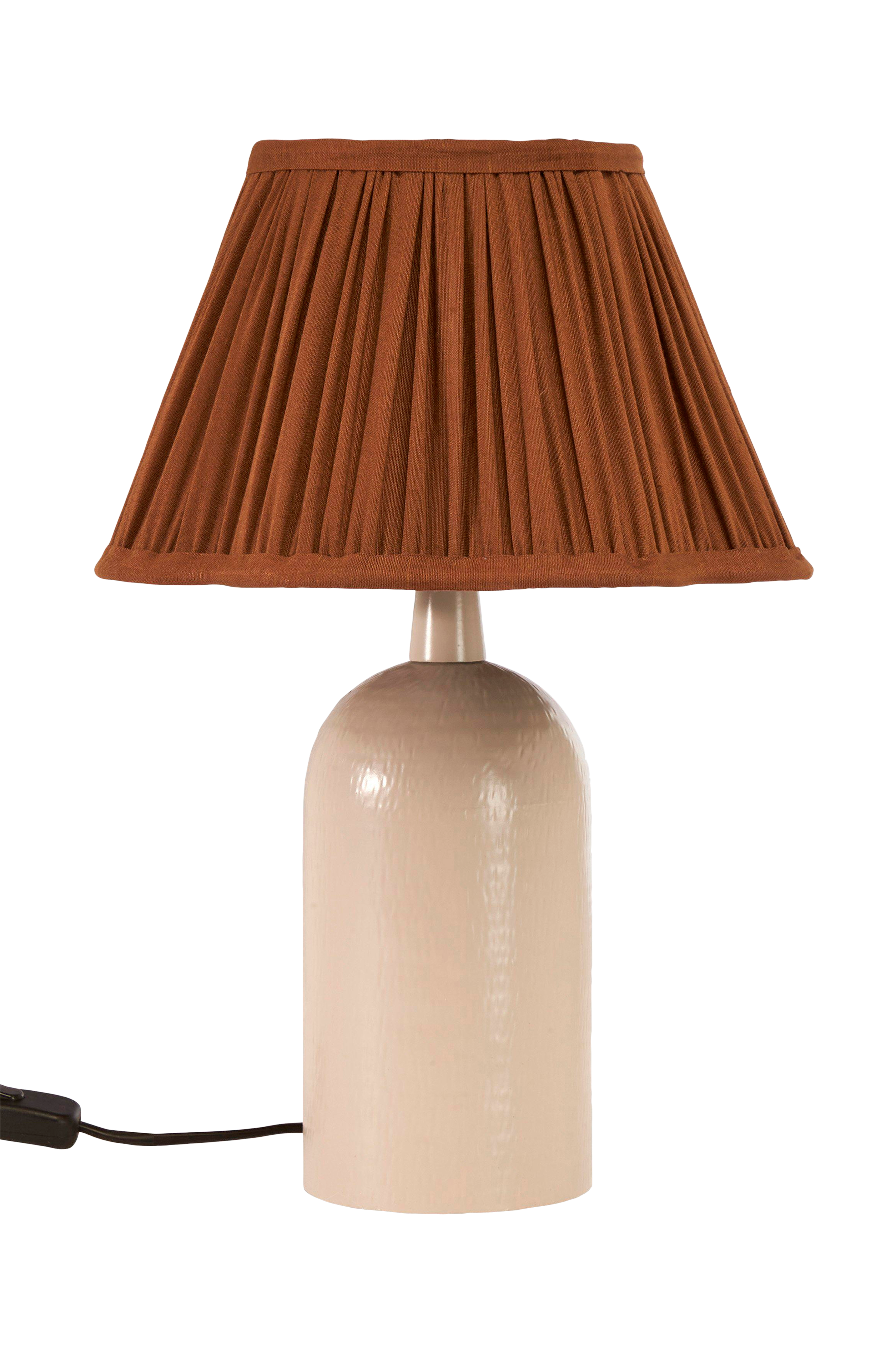 Sievä pöytävalaisin, joka on helppo sijoittaa ja sopii useisiin erilaisiin ympäristöihin. Lampunjalka metallia, jossa taottu rakenne. Varjostin silkinnäköistä rypytettyä kangasta. Sen aaltomainen alareuna saa valon leviämään kauniisti. 170 cm:n muovijohto, jossa virtakytkin. E27-rengaskiinnike.