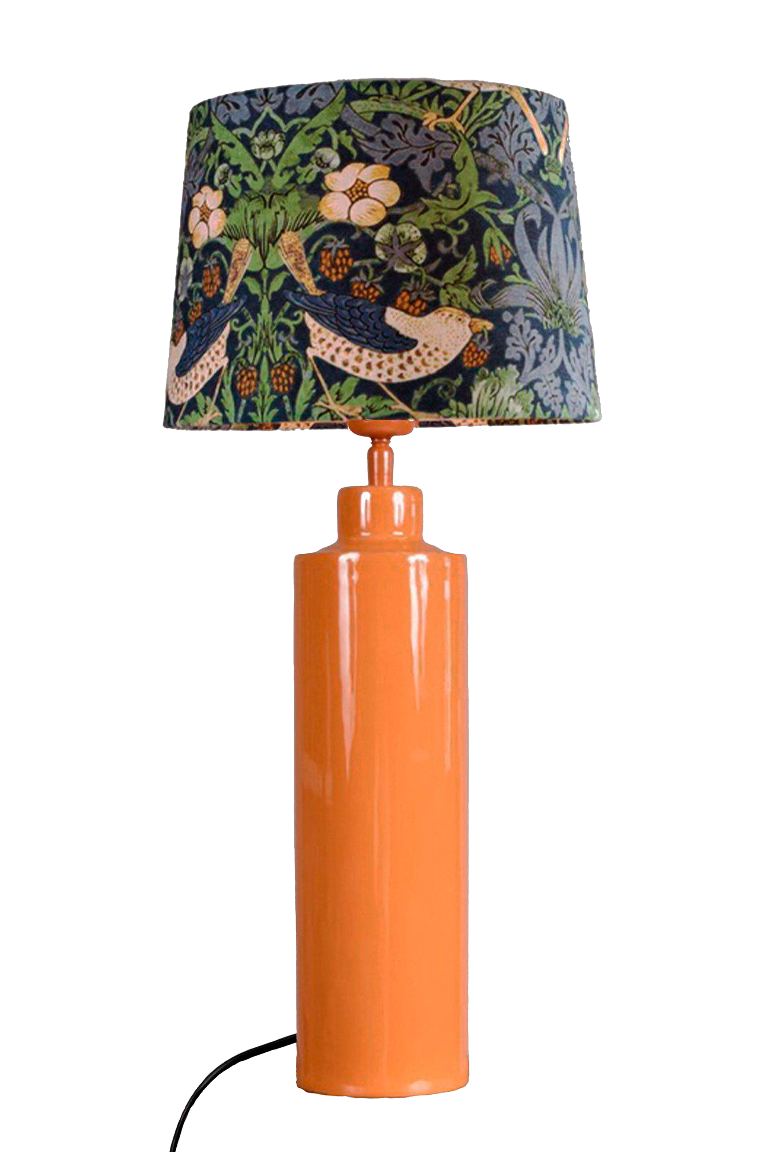 Solo lampun kanta, jossa on sylinterinmuotoinen painettu varjostin. Varjostin on 25 cm leveä ja 18 cm korkea, ja siinä on e27-kiinnitys. Valaisimen jalusta on 44cm korkea ja kokonaiskorkeus on 58cm. 1,7 metrin johto, jossa on kytkin ja litteä EU-pistoke. E27-pistorasia. Max 40w. Ip20. Valonlähde ei sisälly.