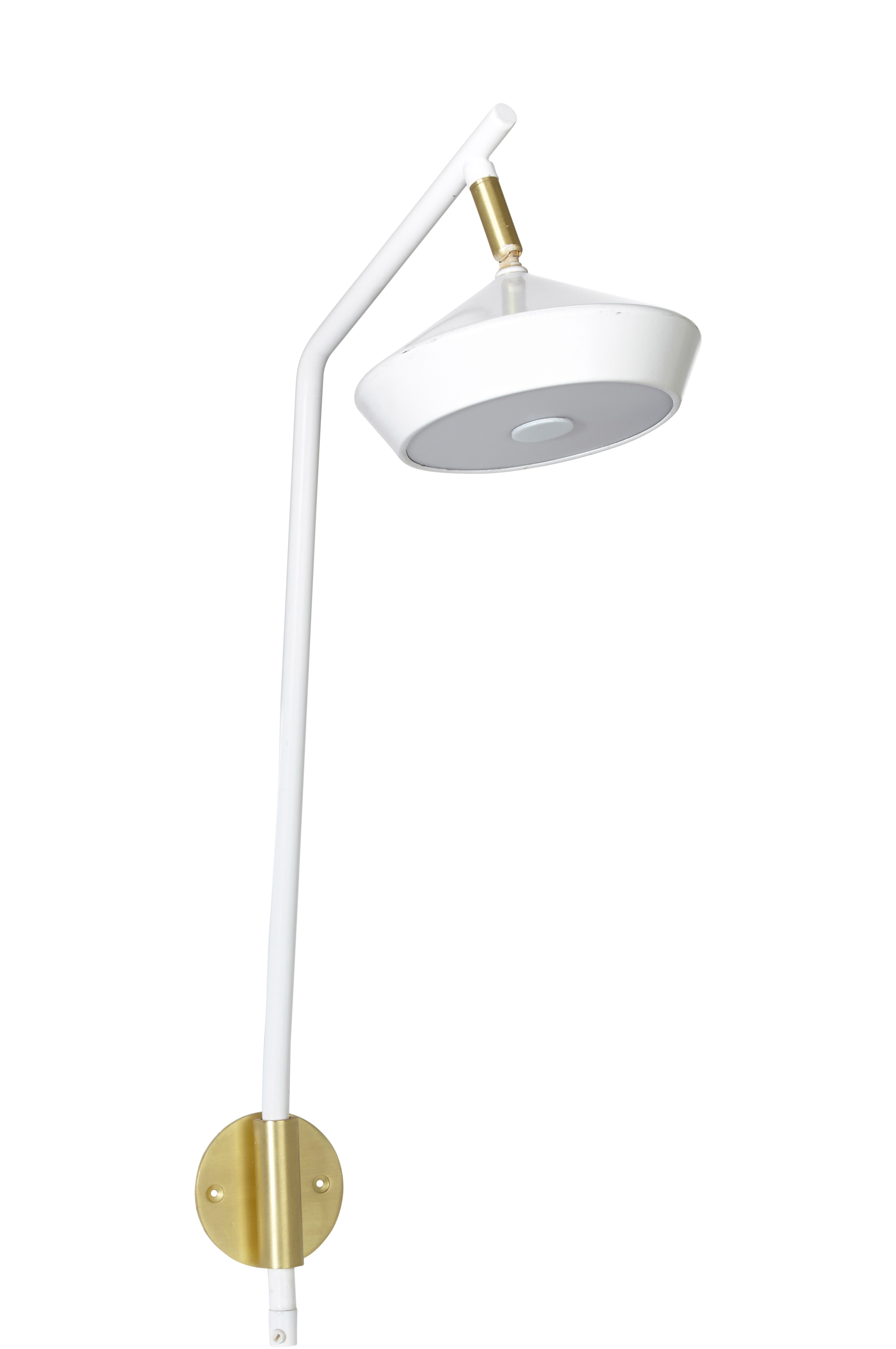 Geometri-sarjan tuotteissa on ainutlaatuinen muotoilu ja ne on kehitetty vain PR Homelle. Tämän seinävalaisimen moderni muoto kestää aikaa. Integroitu LED, jossa himmennin johdossa. Helpottaa valojen päälle laittamista ja sammuttamista sekä valon säätämistä. Huurretun levyn ansiosta valaisin valaisee tasaisesti ja miellyttävästi. Varjostin on säädettävä, joten valoa voi kääntää. Mattamaalattua metallia, jossa messinginväriset yksityiskohdat. Tuleva klassikko! Korkeus 53 cm, leveys 23 cm ja syvyys 15 cm. Johdon pituus 1,8 metriä.