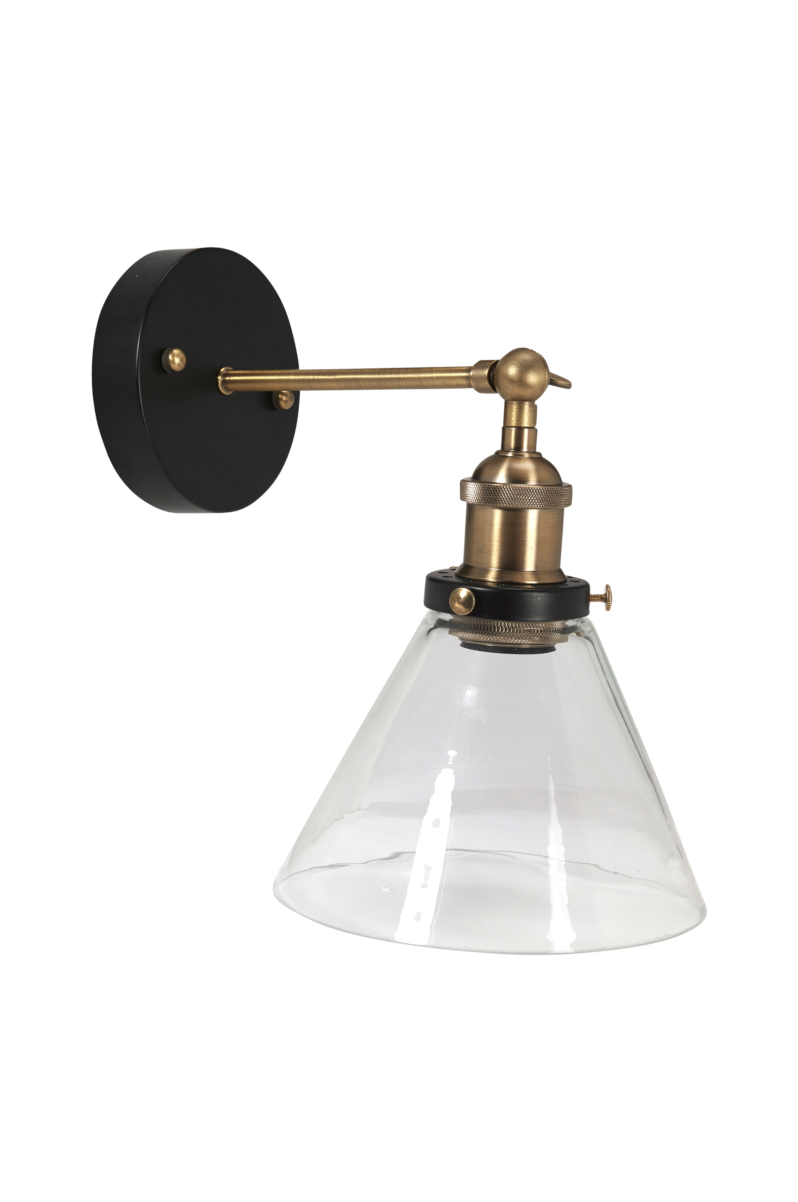 Klassinen seinävalaisin, jossa lasia ja mattamusta metallirunko. Lasinvärisen mallin metallirunko on mattamusta/messingin värinen. Valaisin on kosteussuojattu IP23-luokituksen mukaisesti ja sopii kylpyhuoneeseen. Korkeus 28 cm, leveys 18 cm ja syvyys 28 cm. Ei himmennettävä. Valonlähde ei sisälly toimitukseen.