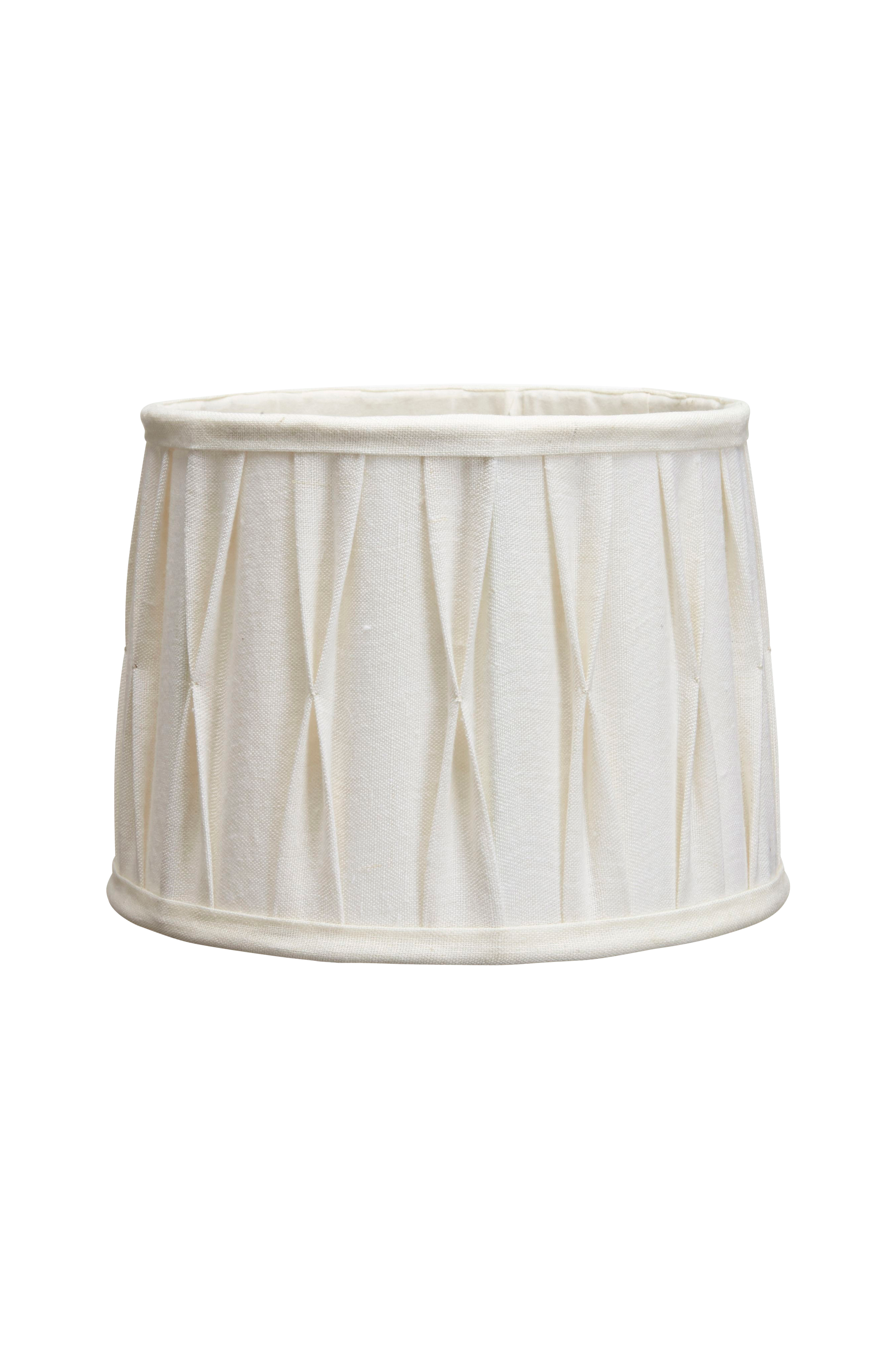 Sofia Stygn Plissé -lampunvarjostin. Pyöreä, korkeus 15 cm. Halkaisija alhaalta 20,5 cm, ylhäältä 17 cm. E27-rengaskiinnike 4,5 cm alareunasta.