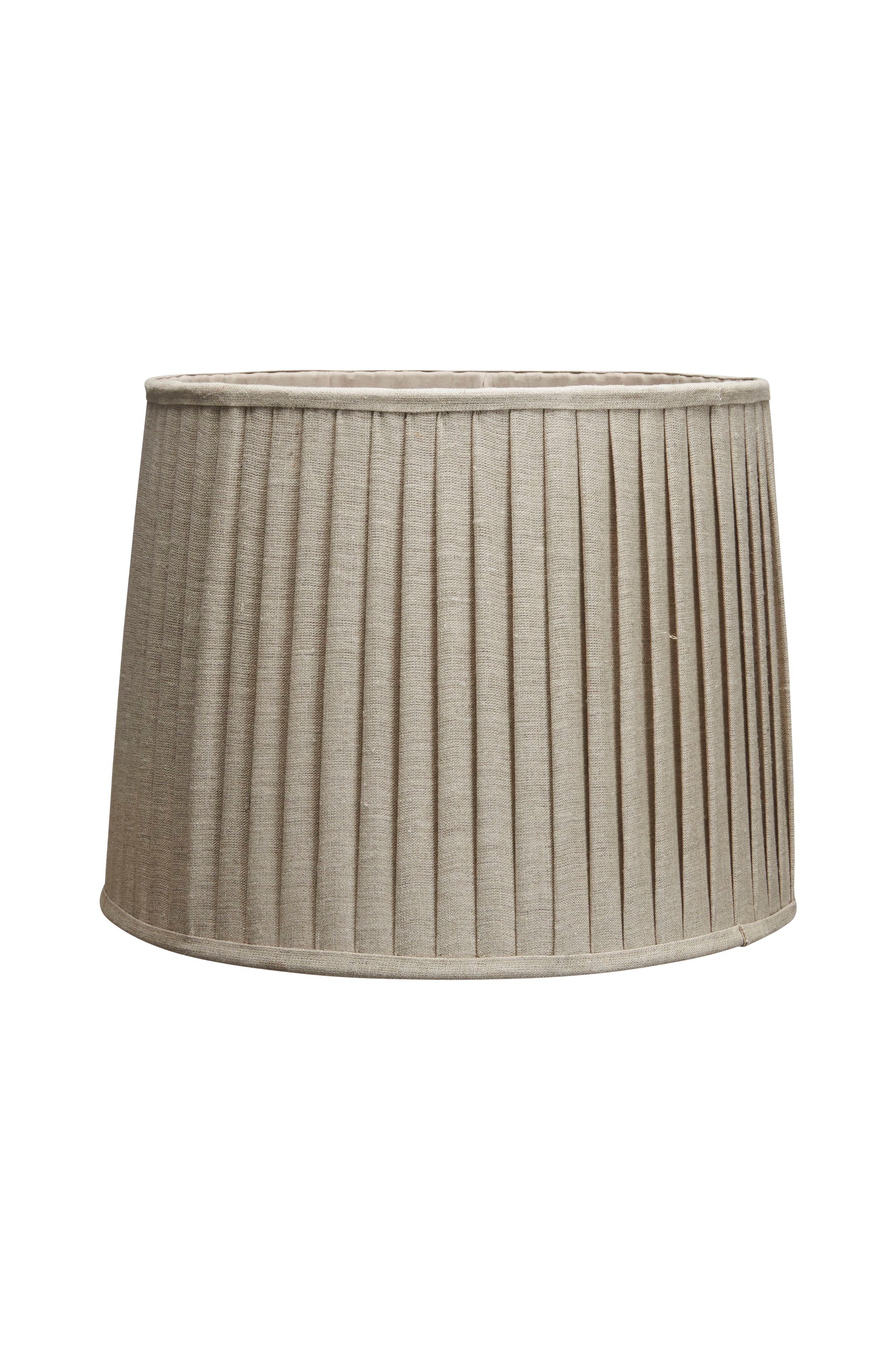 Sofia Plissé -lampunvarjostin. Pyöreä, korkeus 18 cm. Halkaisija alhaalta 25,5 cm, ylhäältä 22 cm. E27-rengaskiinnike 4,5 cm alareunasta.