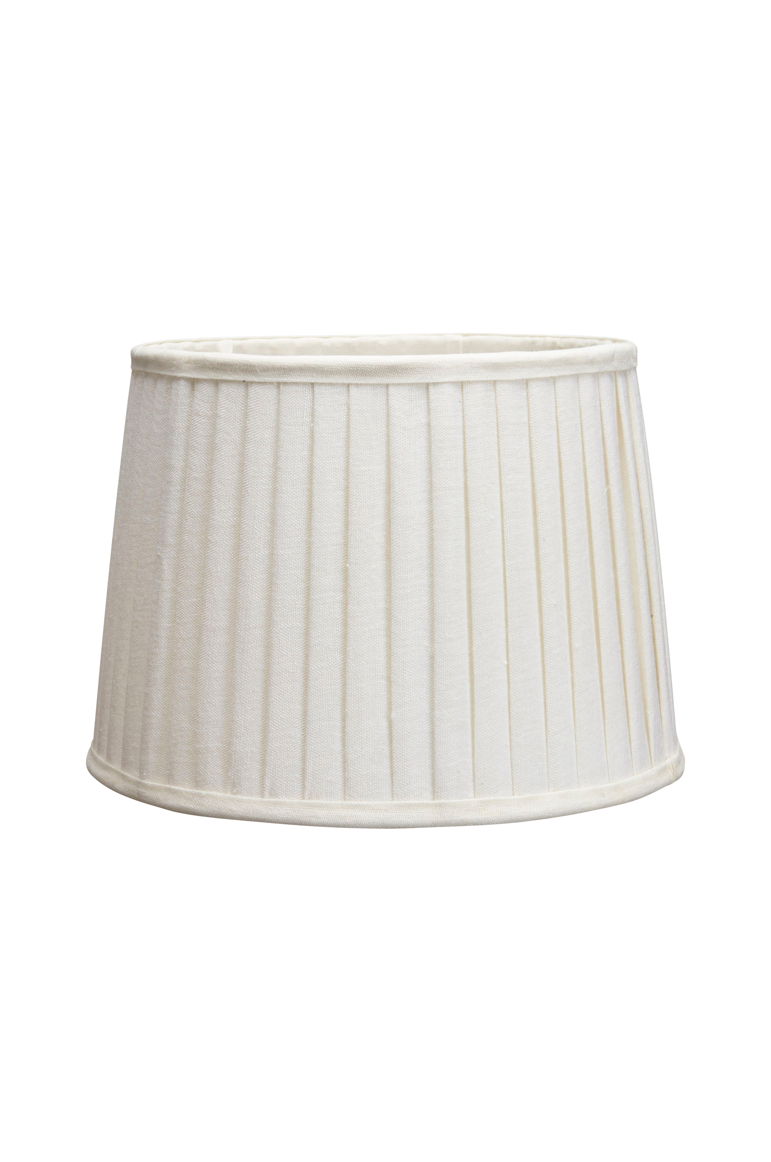 Sofia Plissé -lampunvarjostin. Pyöreä, korkeus 25 cm. Halkaisija alhaalta 35 cm, ylhäältä 30 cm. E27-rengaskiinnike 4,5 cm alareunasta.