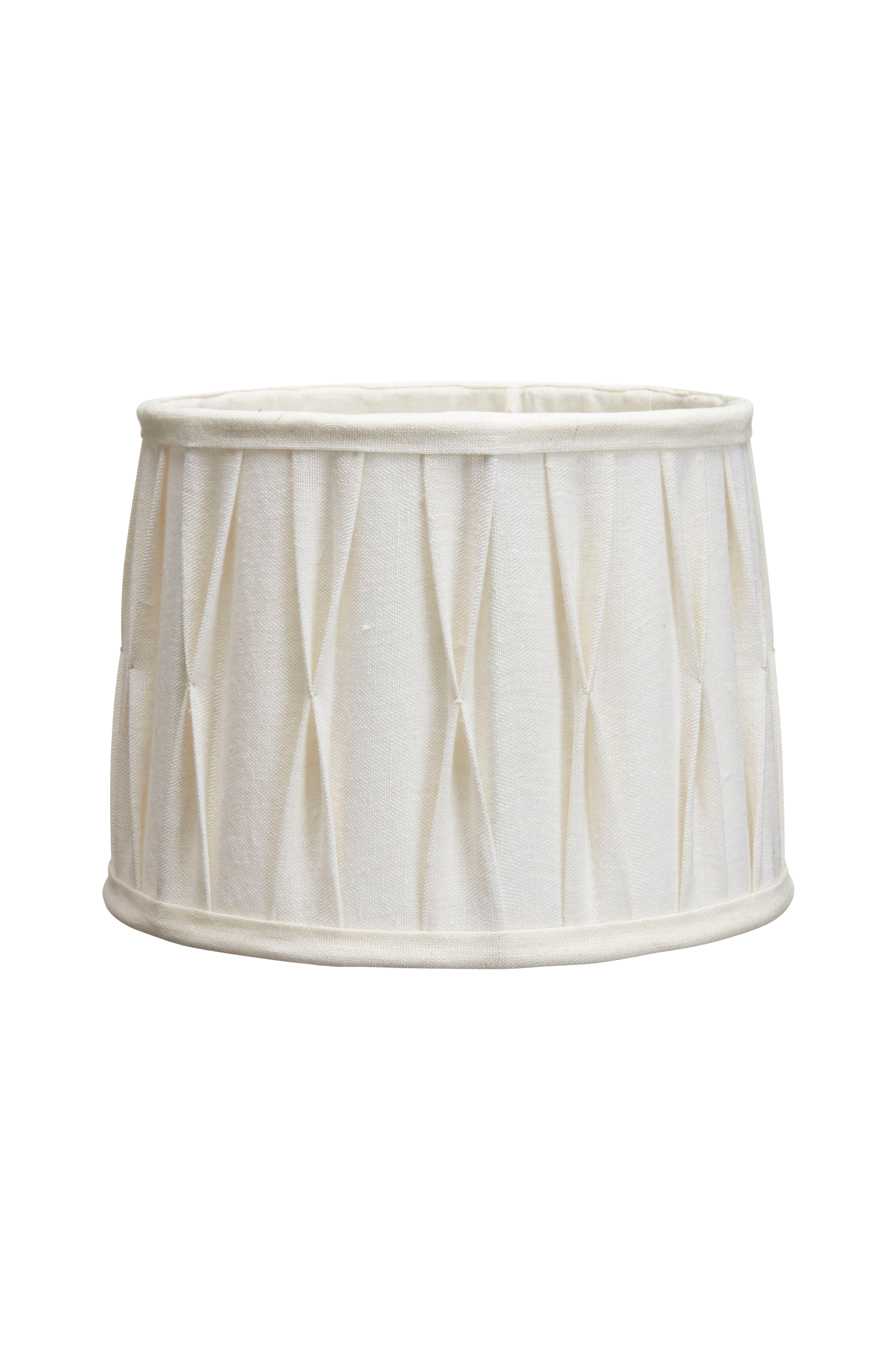Sofia Plissé Stygn -lampunvarjostin. Pyöreä, korkeus 25 cm. Halkaisija alhaalta 35 cm, ylhäältä 30 cm. E27-rengaskiinnike 4,5 cm alareunasta.