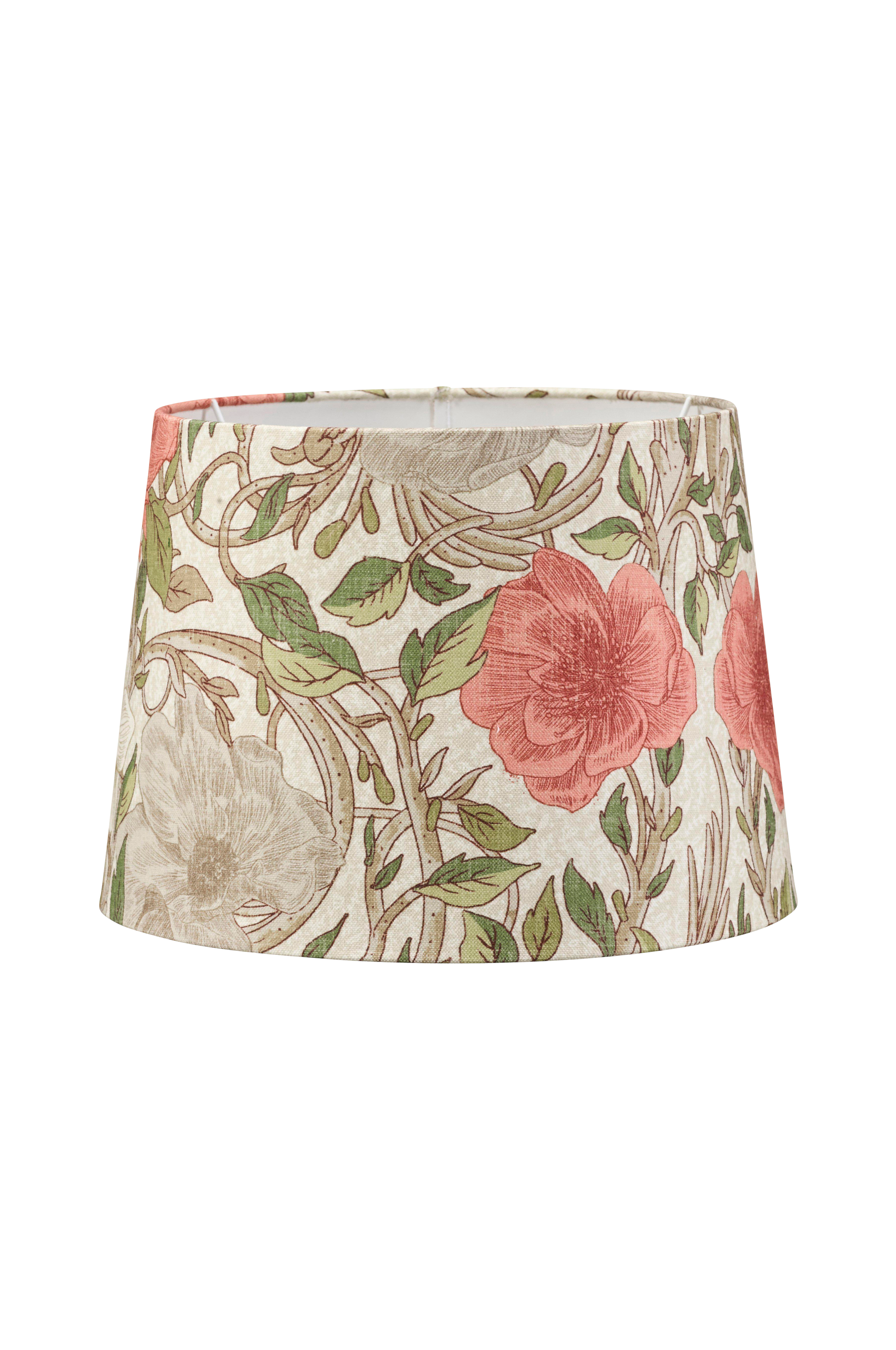 Sofia-varjostin puuvillakangasta, jossa kaunis kuvio. Monta väri- ja kokovaihtoehtoa. Pyöreä varjostin, jossa E27-rengaskiinnike. Korkeus 15,5 cm, leveys alhaalta 20 cm, leveys ylhäältä 17 cm.