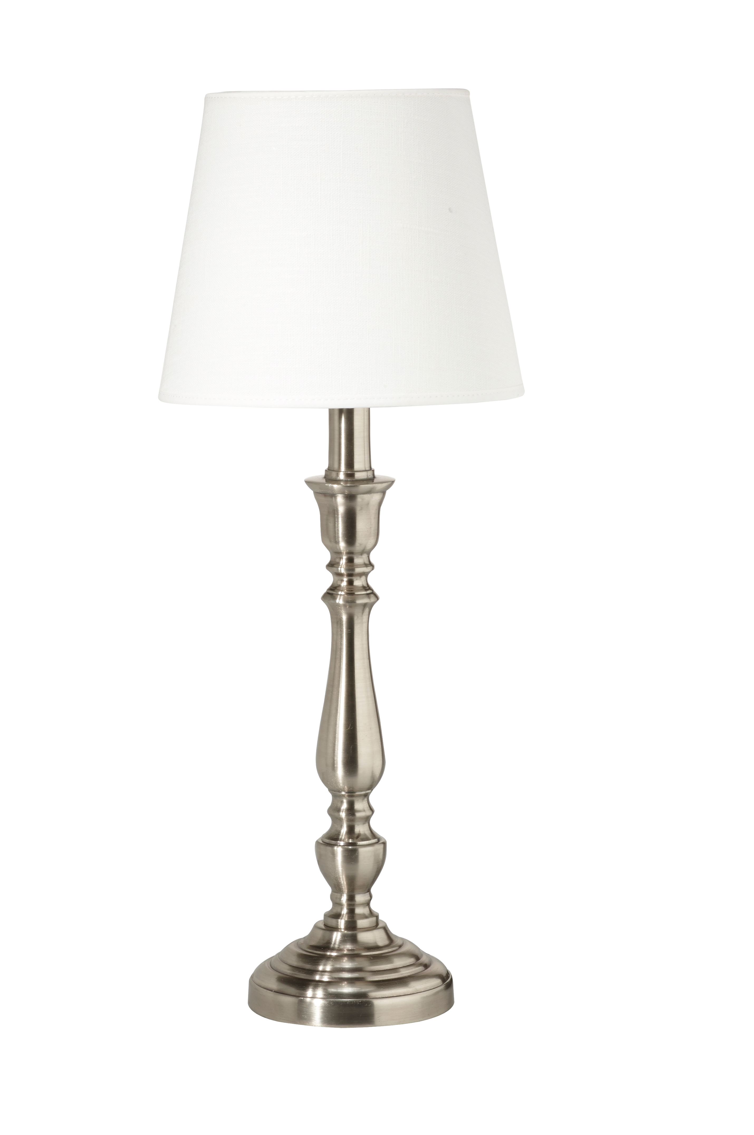 Jalka metallia. Korkeus 27 cm, leveys 10 cm. E27, enintään 40 W. 1,8 metrin liitäntäjohto, jossa katkaisin. Pellavavarjostimen halkaisija 14/10 cm. Korkeus 14,5 cm. Kokonaiskorkeus 38 cm.