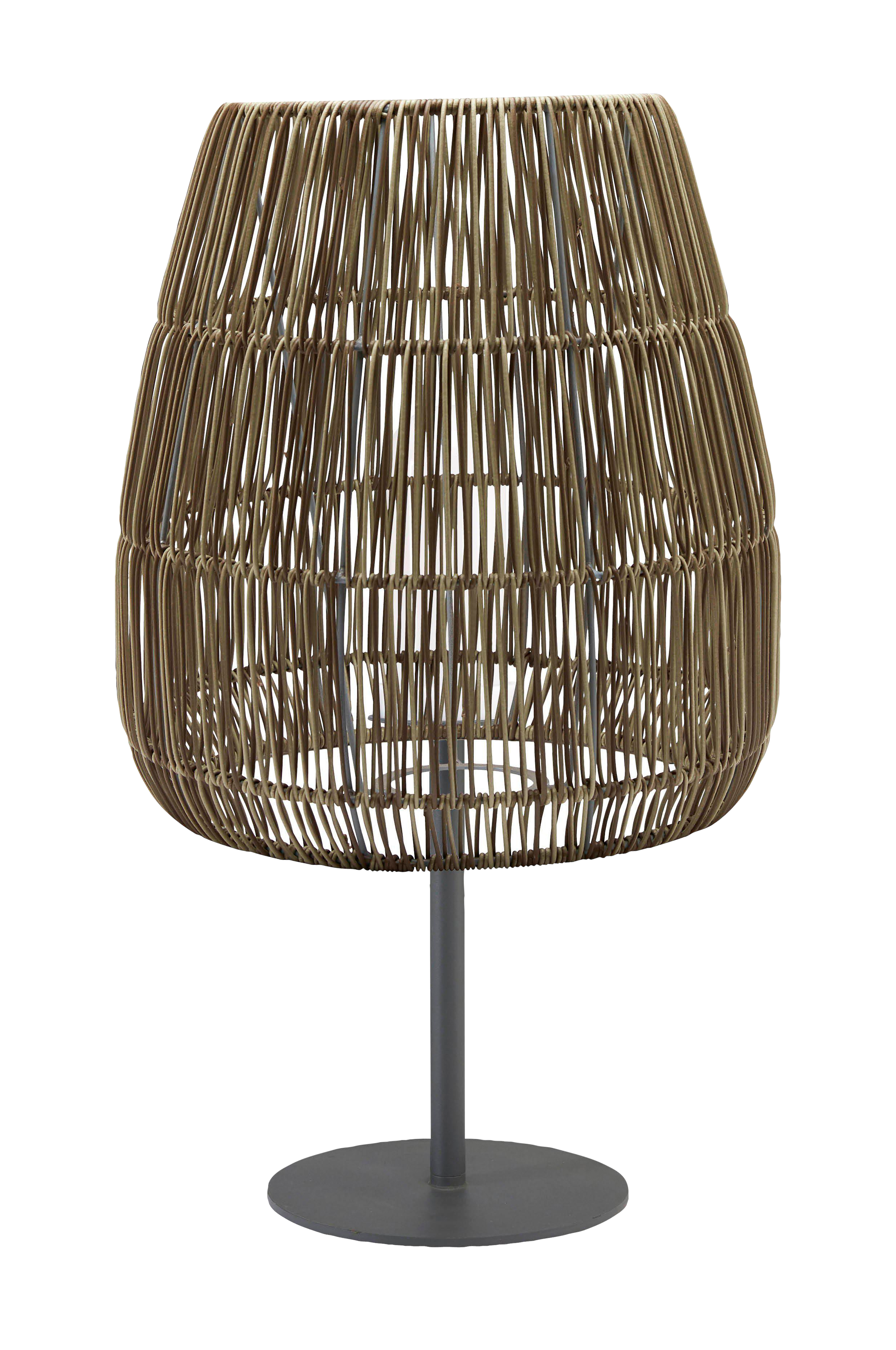 Vie olohuone ulos! Agnar-pöytävalaisin, jossa Saigon-varjostin. Molemmat sopivat ulkokäyttöön. Lampunjalassa E27-lampunpidike. Ulkokäyttöön sopivassa valonlähteessä tulee olla E27-lampunkanta. Enintään 40 W. Valonlähteen ja lampunpidikkeen päällä on läpikuultava muovikansi sekä kotelo, jotka suojaavat kosteudelta. Punottu lampunvarjostin luo kauniin valojen leikin. Valmistettu säänkestävästä polyrottingista. Varjostin kiinnitetään lampunjalkaan erikoiskiinnikkeellä. Lampunjalan korkeus 50 cm ja varjostimen korkeus 40 cm. Varjostimen halkaisija 38 cm.